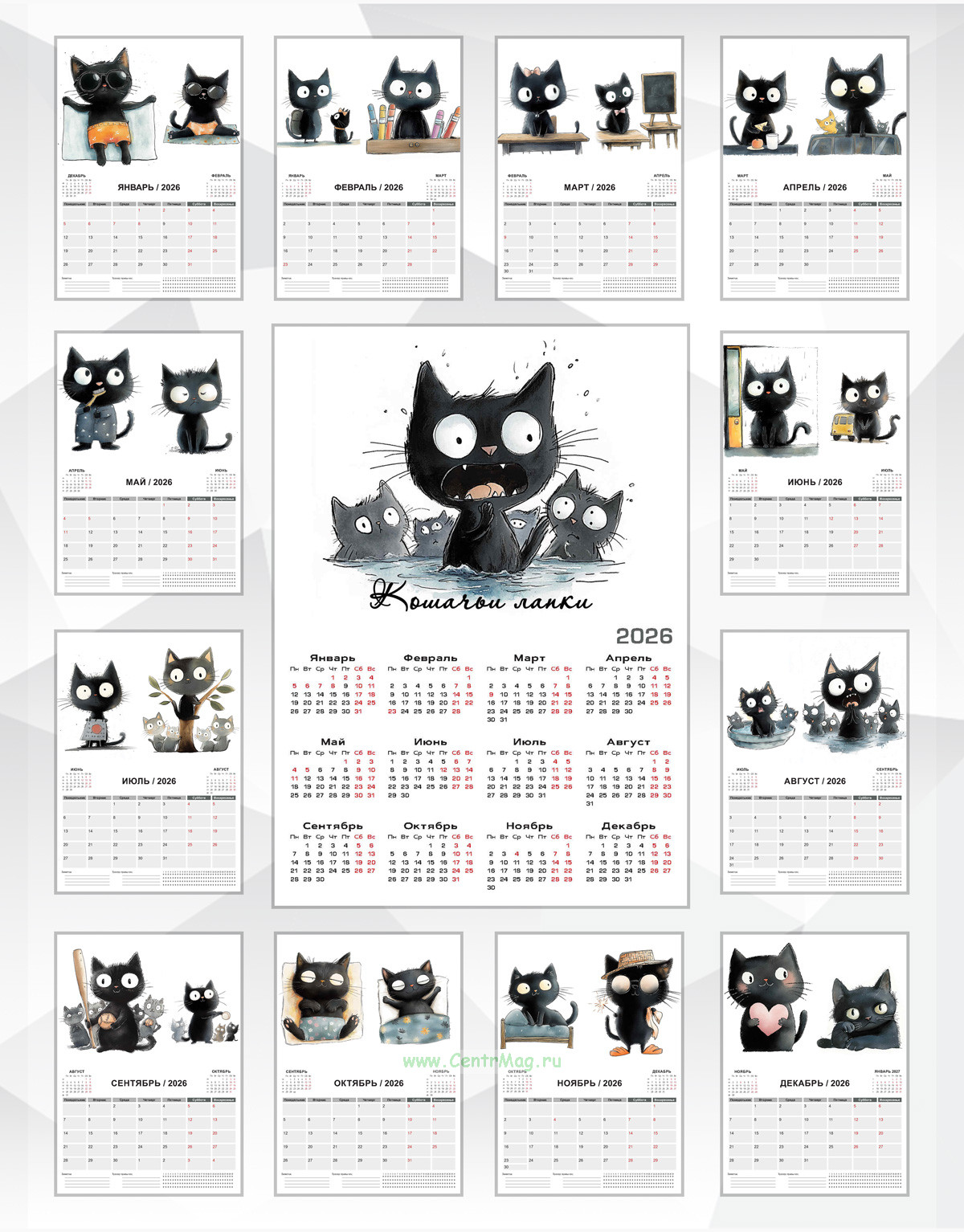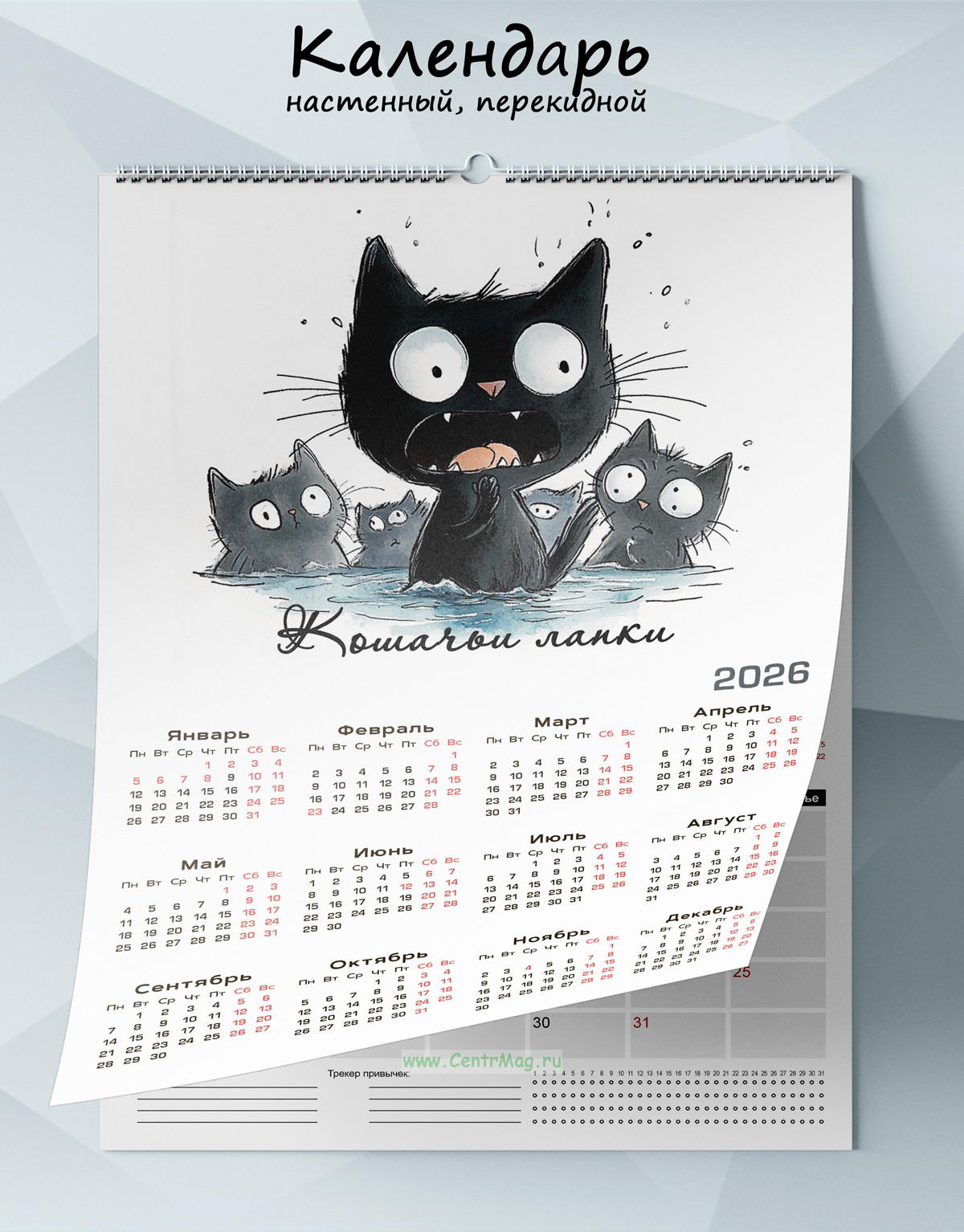 Календарь-планер настенный, перекидной "Кошачьи лапки" на 2026 год