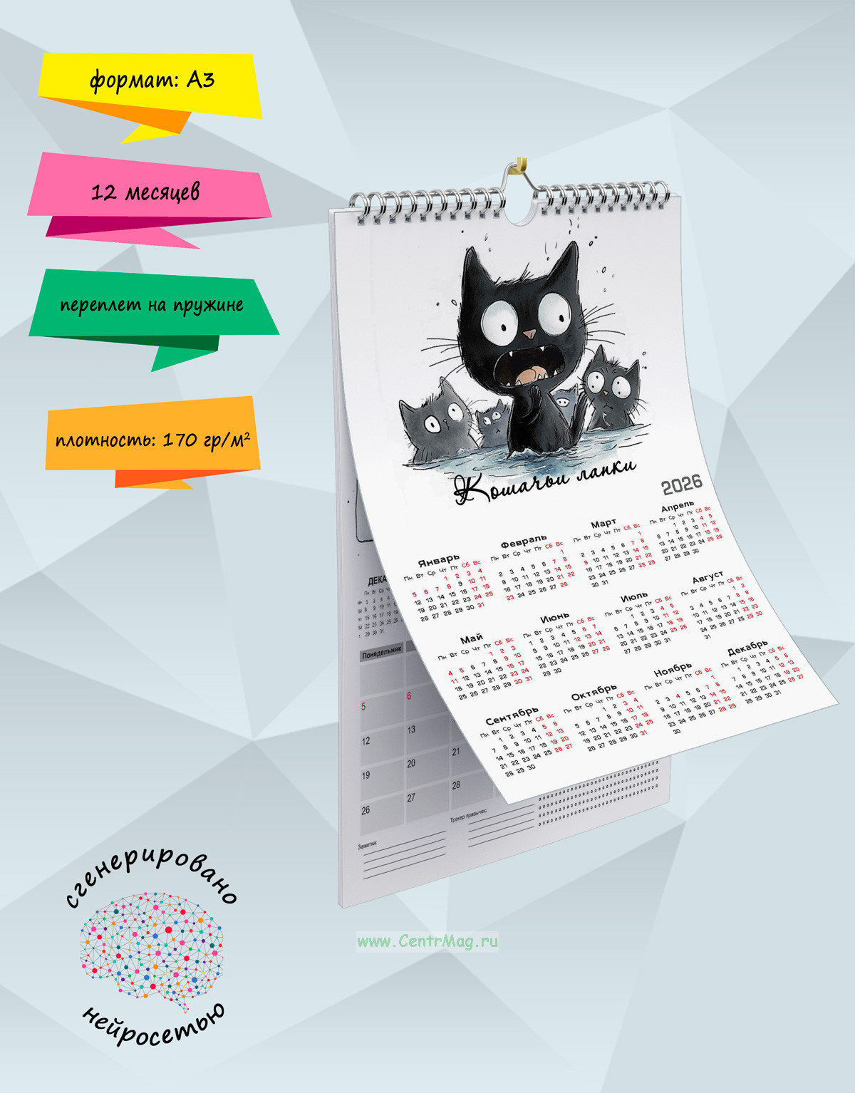 Календарь-планер отличный помощник во всех делах, не даст забыть о важном деле, милые изображения котиков, сгенерированные с помощью нейросети, помогут в этом. Календарь будет отличным подарком для ваших родных, друзей, знакомых, коллег или даже для себя.
