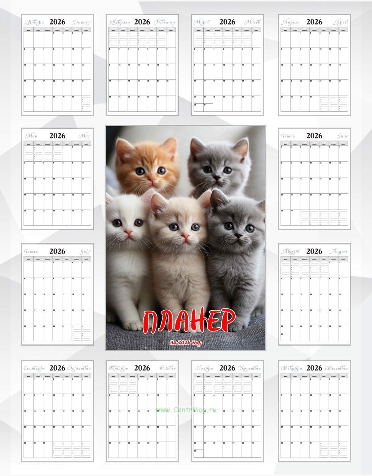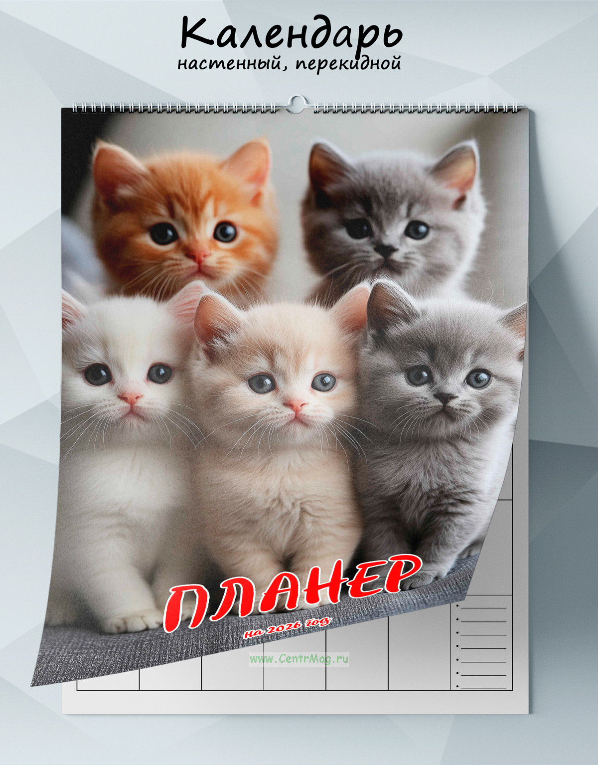 Календарь-планер настенный, перекидной "Очаровательные котятки" на 2026 год