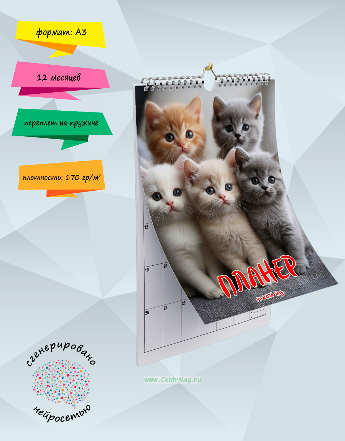 Календарь-планер станет отличным помощником в делах, специальные поля в датах позволят записать важную информацию и не забыть ее. Изображения сгенерированы с помощью нейросети. Календарь будет отличным подарком для ваших родных, друзей, знакомых, коллег или даже для себя.