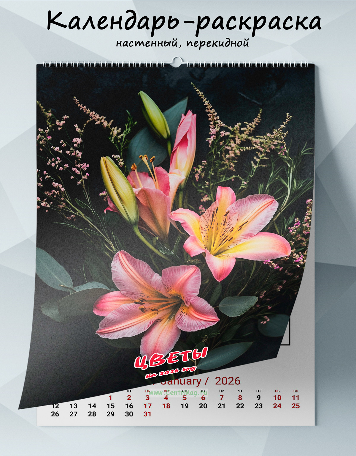 Календарь-раскраска настенный, перекидной "Цветы" на 2026 год