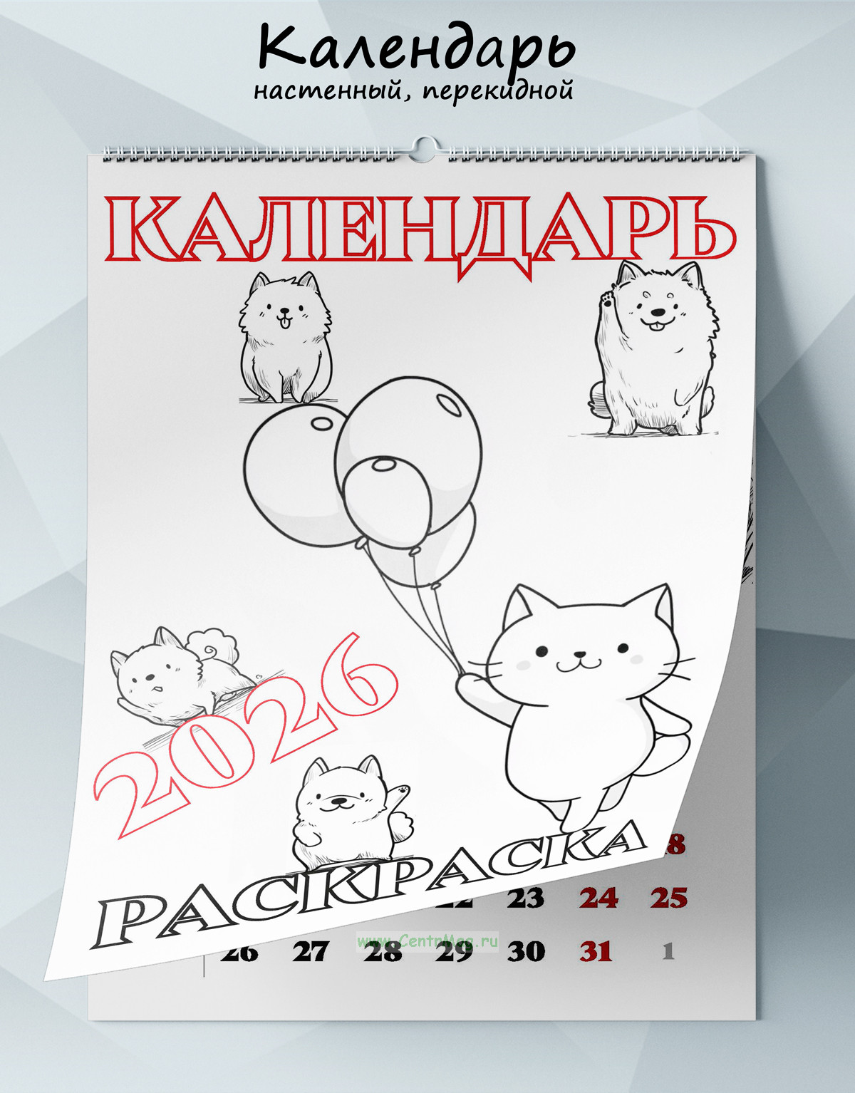 Календарь-раскраска настенный, перекидной "Волшебные зверята" на 2026 год