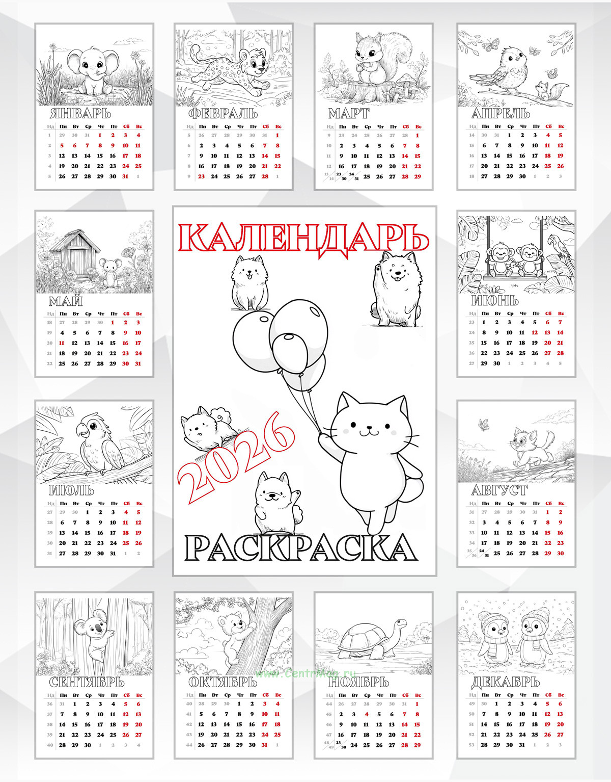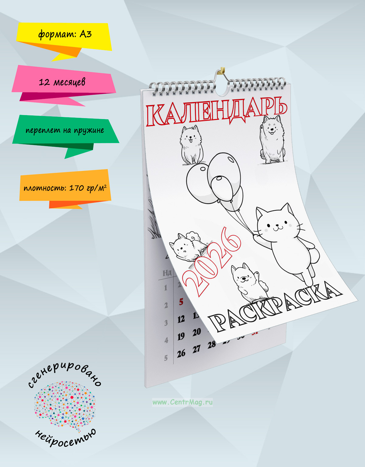 Календарь-раскраска, содержит мультяшные изображения милых зверят, сгенерированные с помощью нейросети. Страницы можно раскрасить: карандашами, фломастерами, цветными ручками, красками. Календарь будет отличным подарком для ваших родных, друзей, знакомых, коллег или даже для себя.