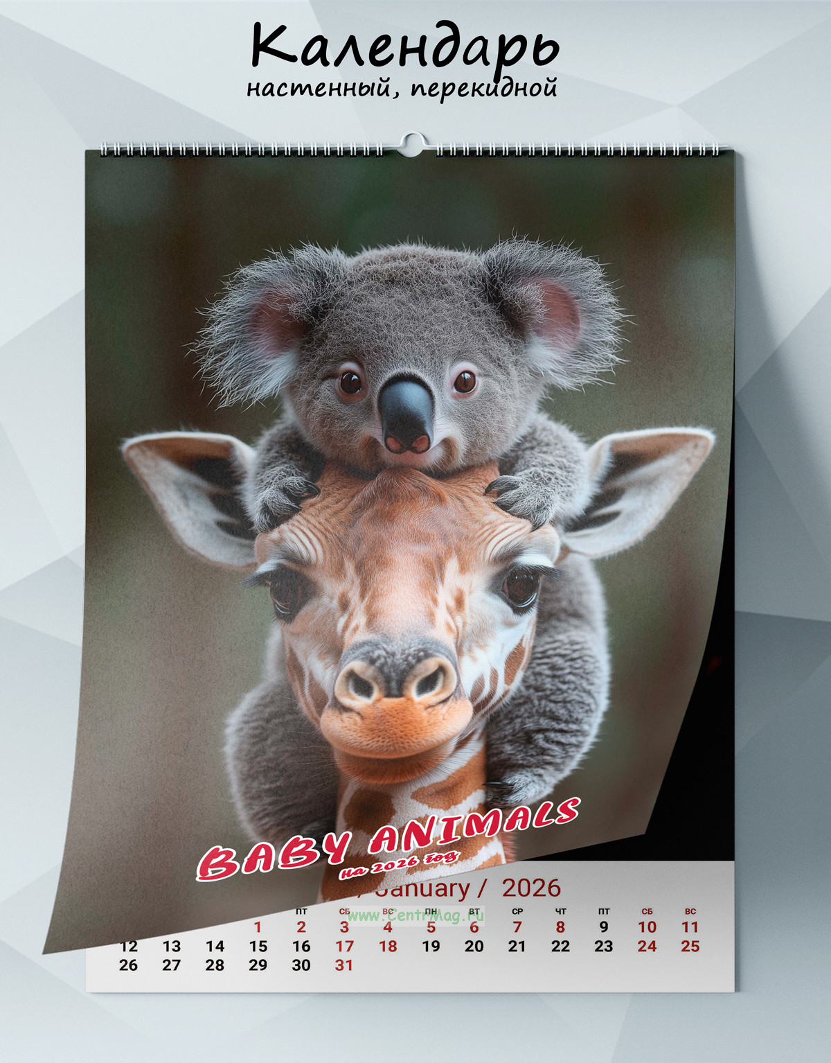 Календарь настенный, перекидной "Baby animals" на 2026 год