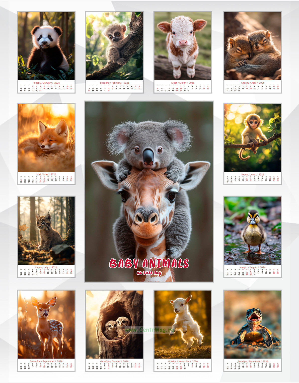 Календарь содержит изображения миленьких детенышей животных, сгенерированные с помощью нейросети. Календарь будет отличным подарком для ваших родных, друзей, знакомых, коллег или даже для себя.