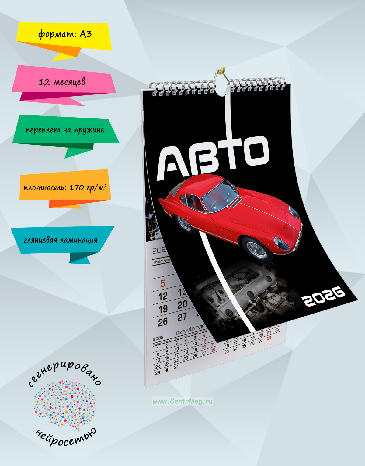 Календарь содержит изображения автомобилей. Календарь будет отличным подарком для ваших родных, друзей, знакомых, коллег или даже для себя.