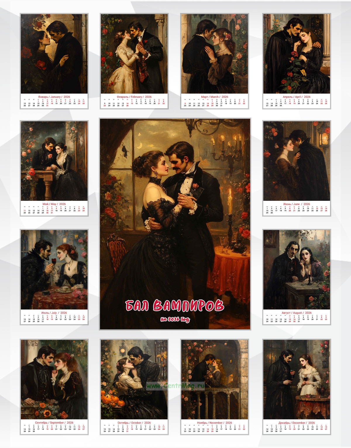 Календарь содержит завораживающие изображения сюжетов любви вампиров в стиле картин XIX века. Иллюстрации нарисованы с помощью искусственного интеллекта. Мы подготовили для вас 12 иллюстраций, от которых тяжело оторвать взгляд.