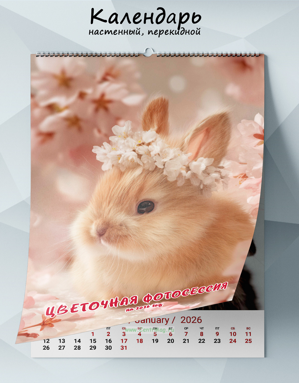 Календарь настенный, перекидной "Цветочная фотосессия" на 2026 год