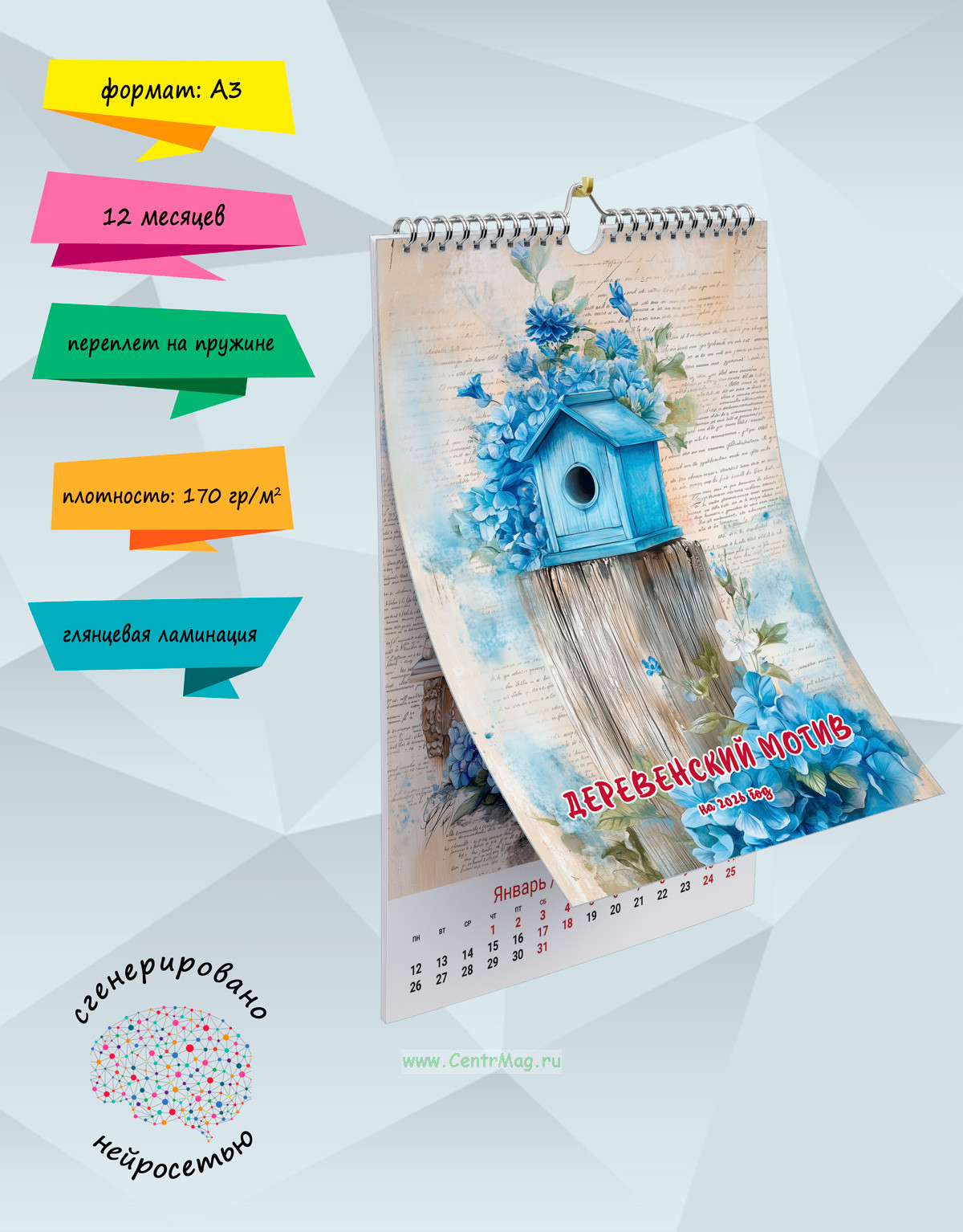 Календарь настенный, перекидной "Деревенский мотив" на 2026 год