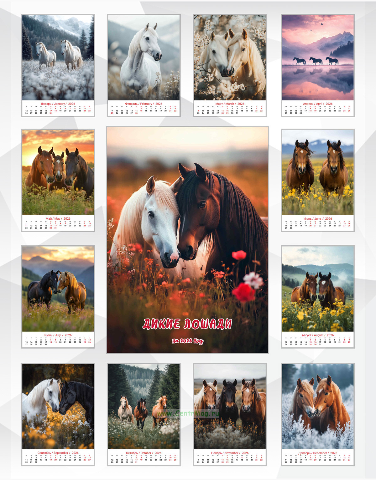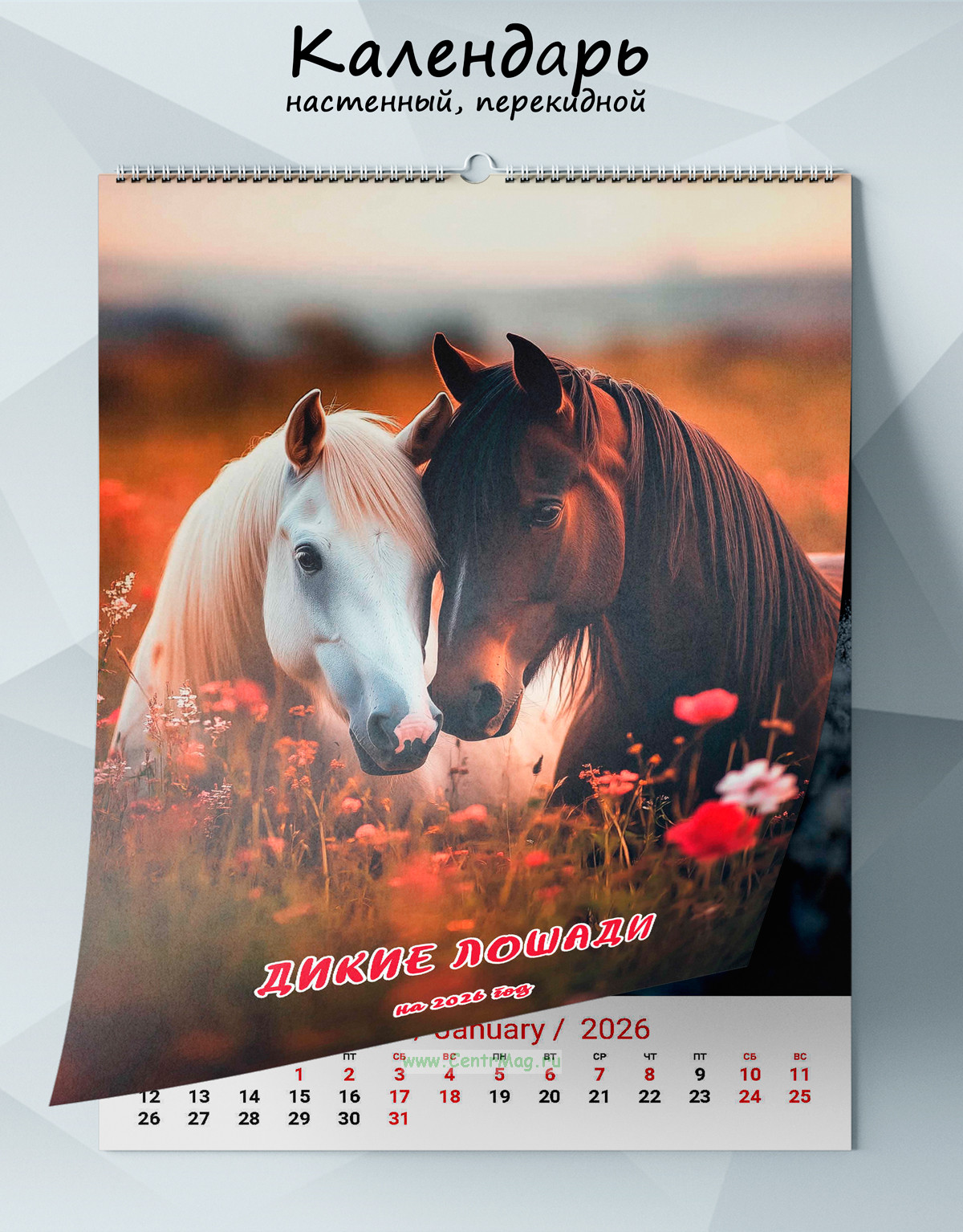 Календарь настенный, перекидной "Дикие лошади" на 2026 год