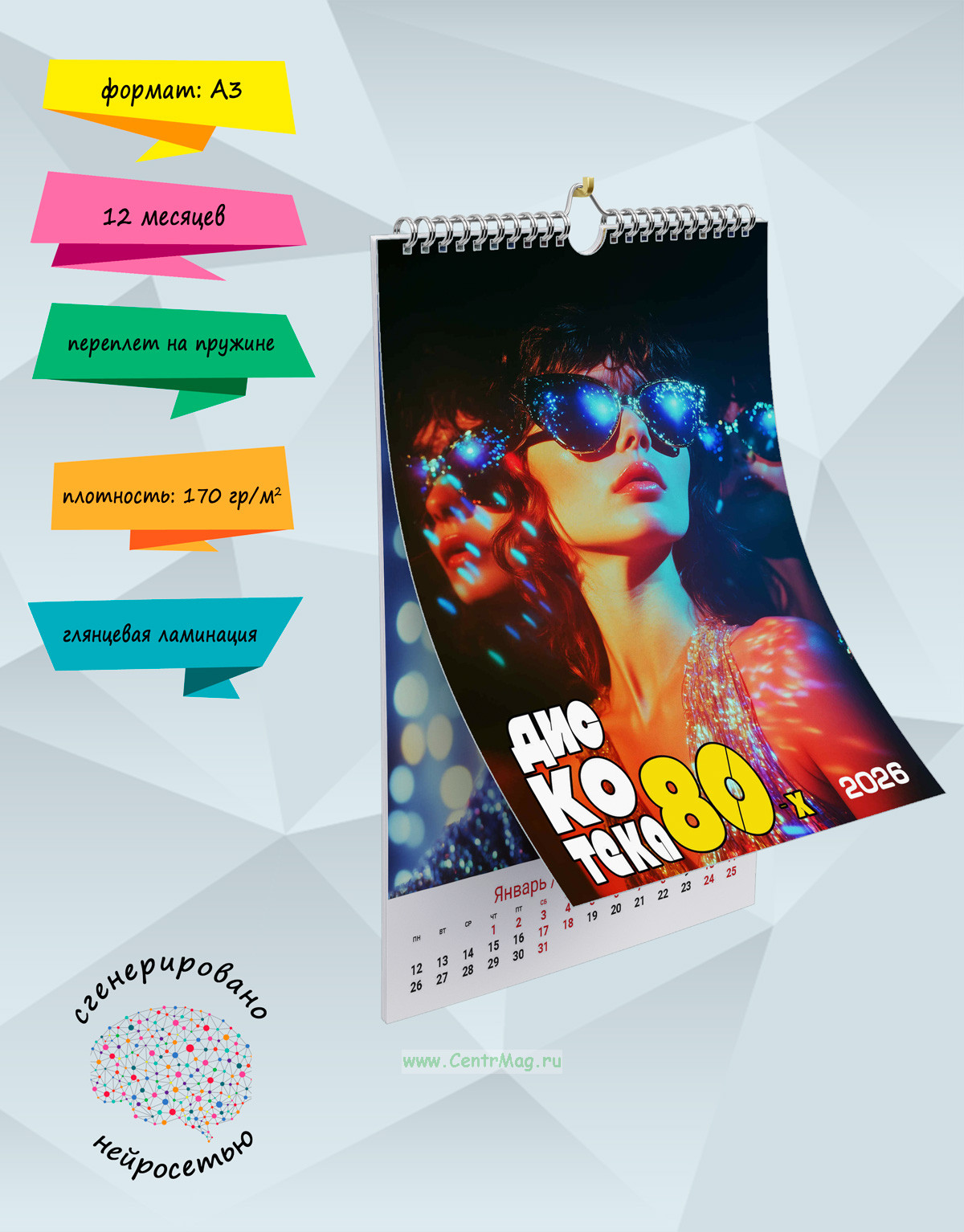 Календарь настенный, перекидной "Дискотека 80-х" на 2026 год