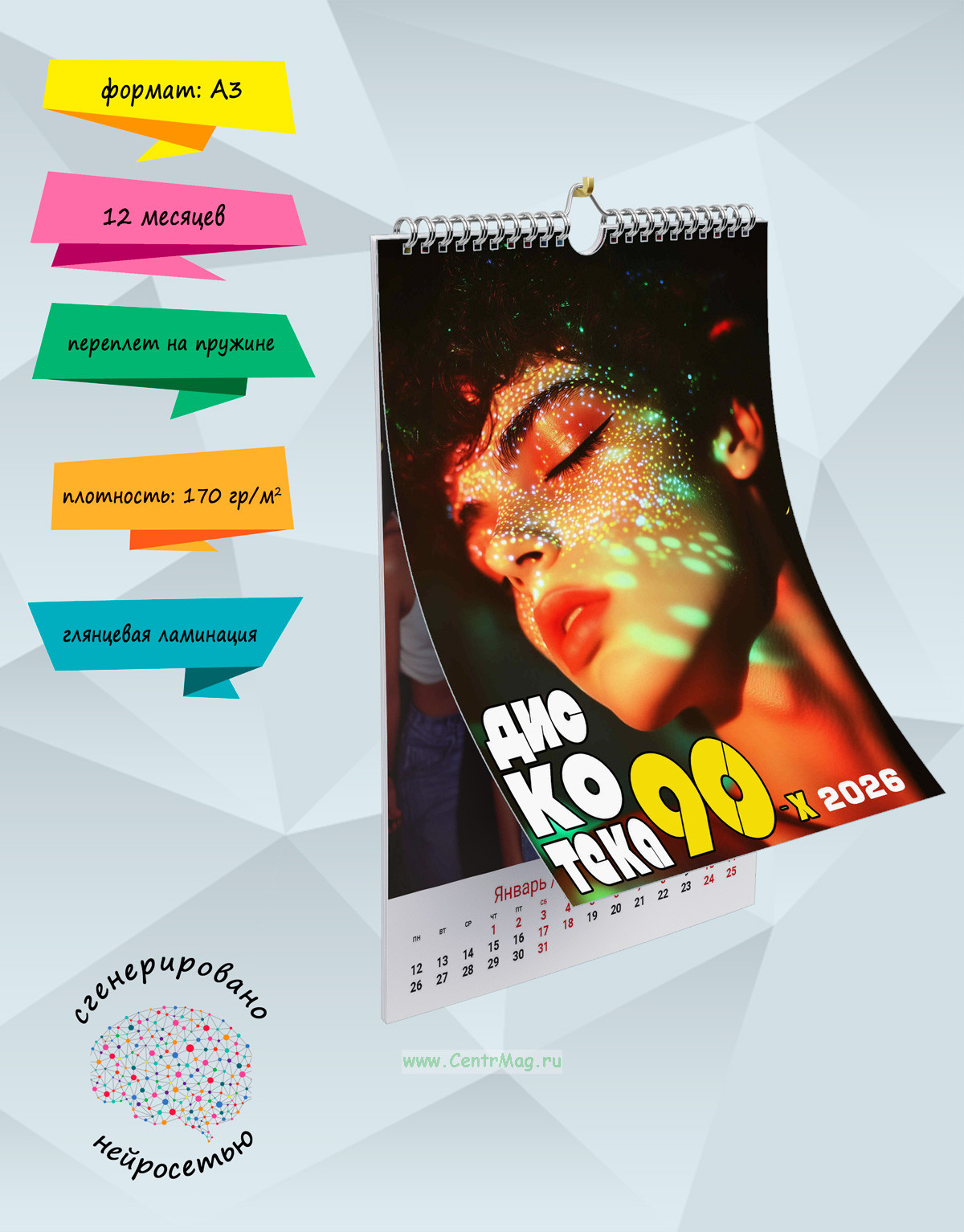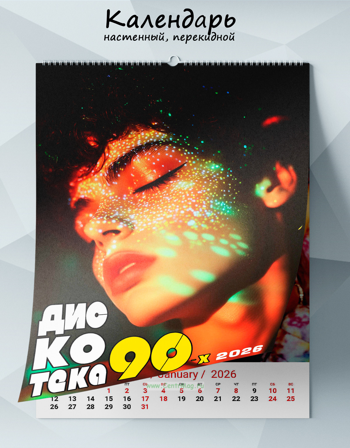 Календарь настенный, перекидной "Дискотека 90-х" на 2026 год