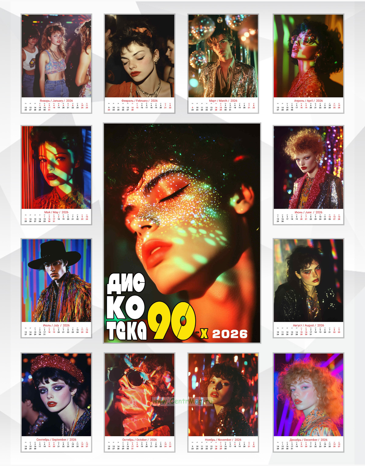 Календарь содержит завораживающие изображения людей на дискотеке 90-х. Иллюстрации нарисованы с помощью искусственного интеллекта. Мы подготовили для вас 12 иллюстраций, от которых тяжело оторвать взгляд.