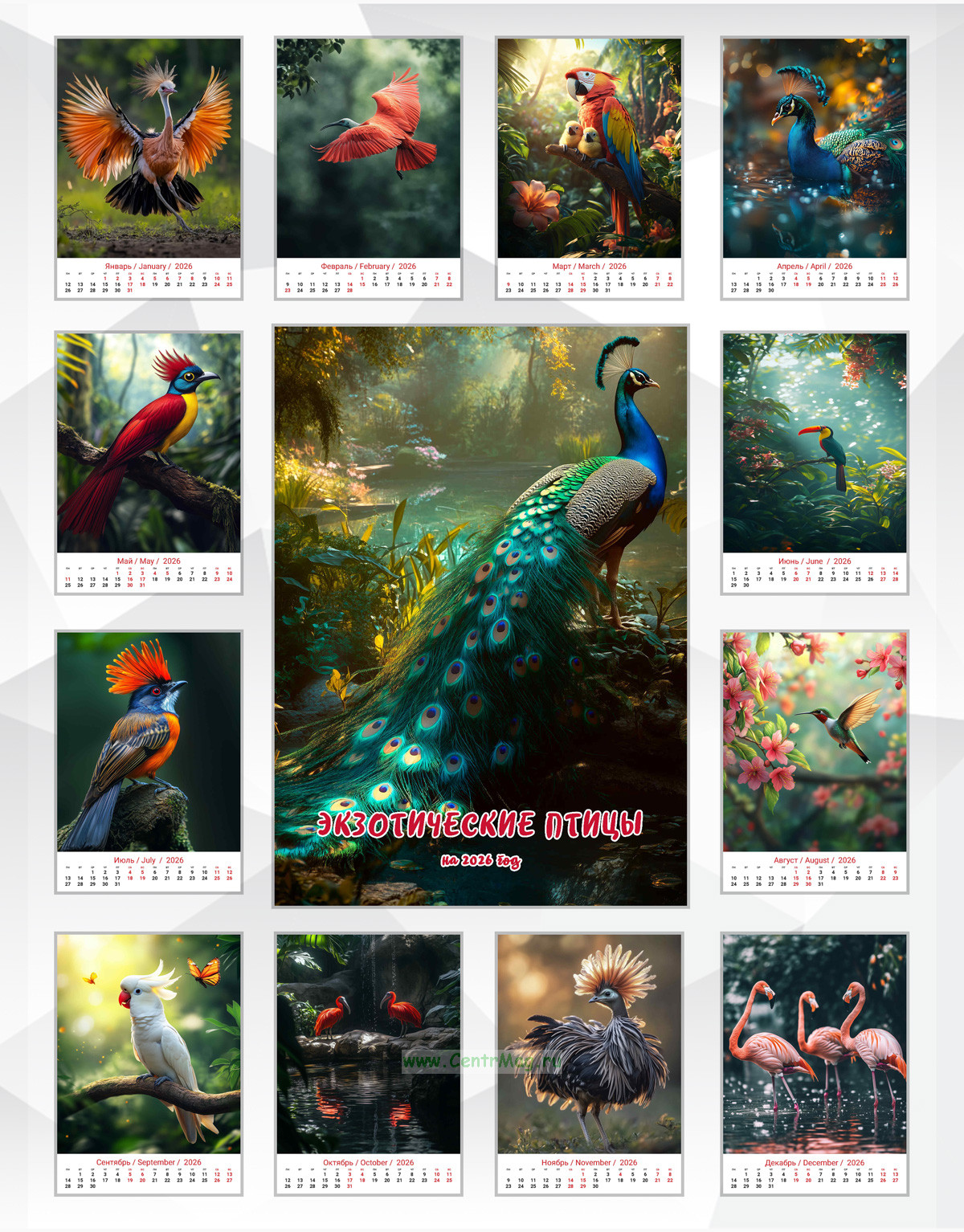 Календарь настенный, перекидной "Экзотические птицы" на 2026 год