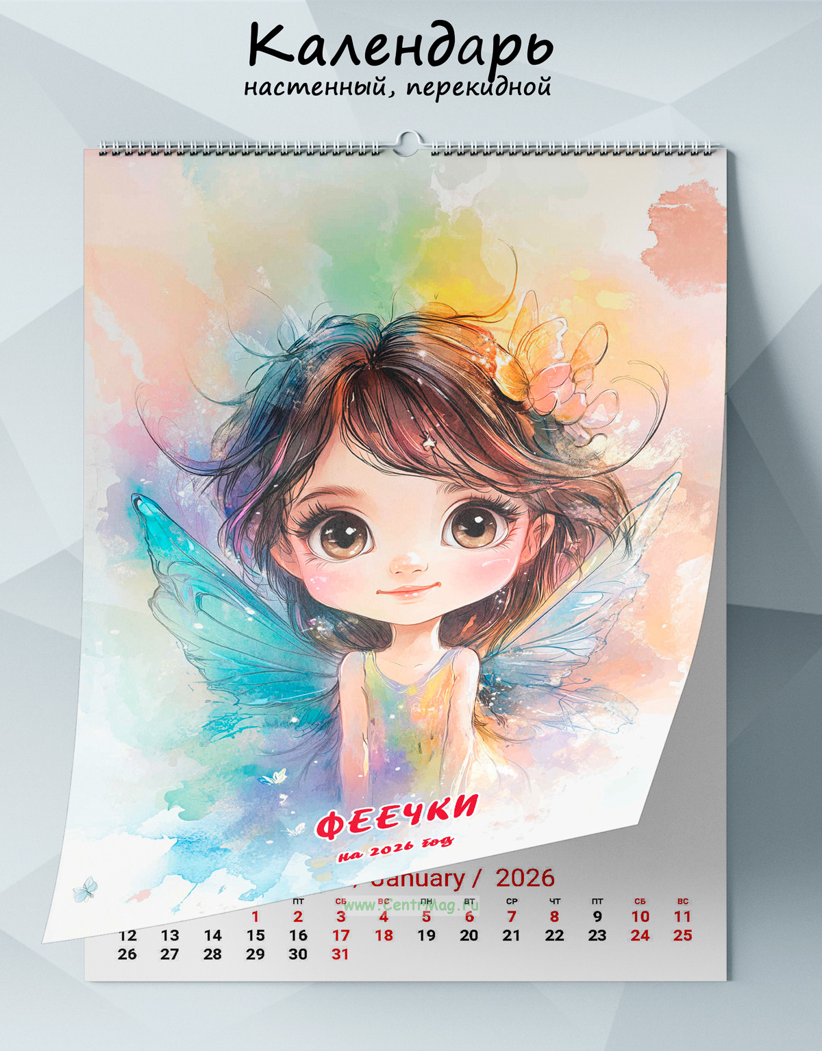Календарь настенный, перекидной "Феечки" на 2026 год