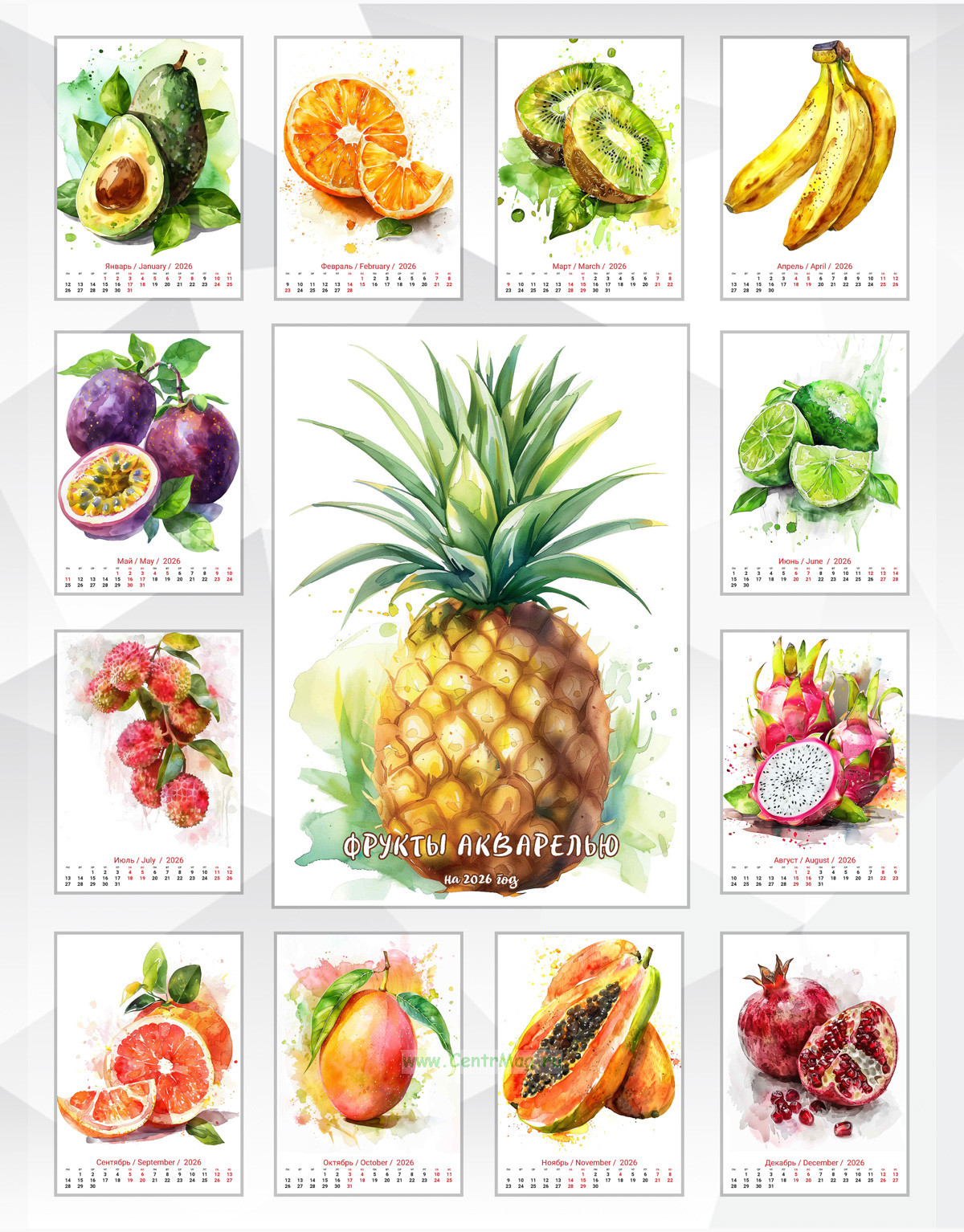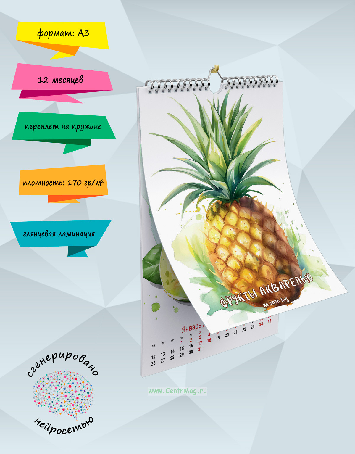 Календарь содержит изображения самых вкусных фруктов, сгенерированные с помощью нейросети. Календарь будет отличным подарком для ваших родных, друзей, знакомых, коллег или даже для себя.