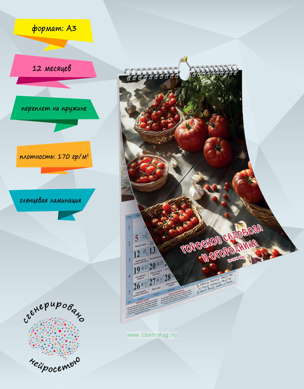 Изображения сгенерированы с помощью нейросети. Календарь будет отличным подарком для ваших родных, друзей, знакомых, коллег или даже для себя.