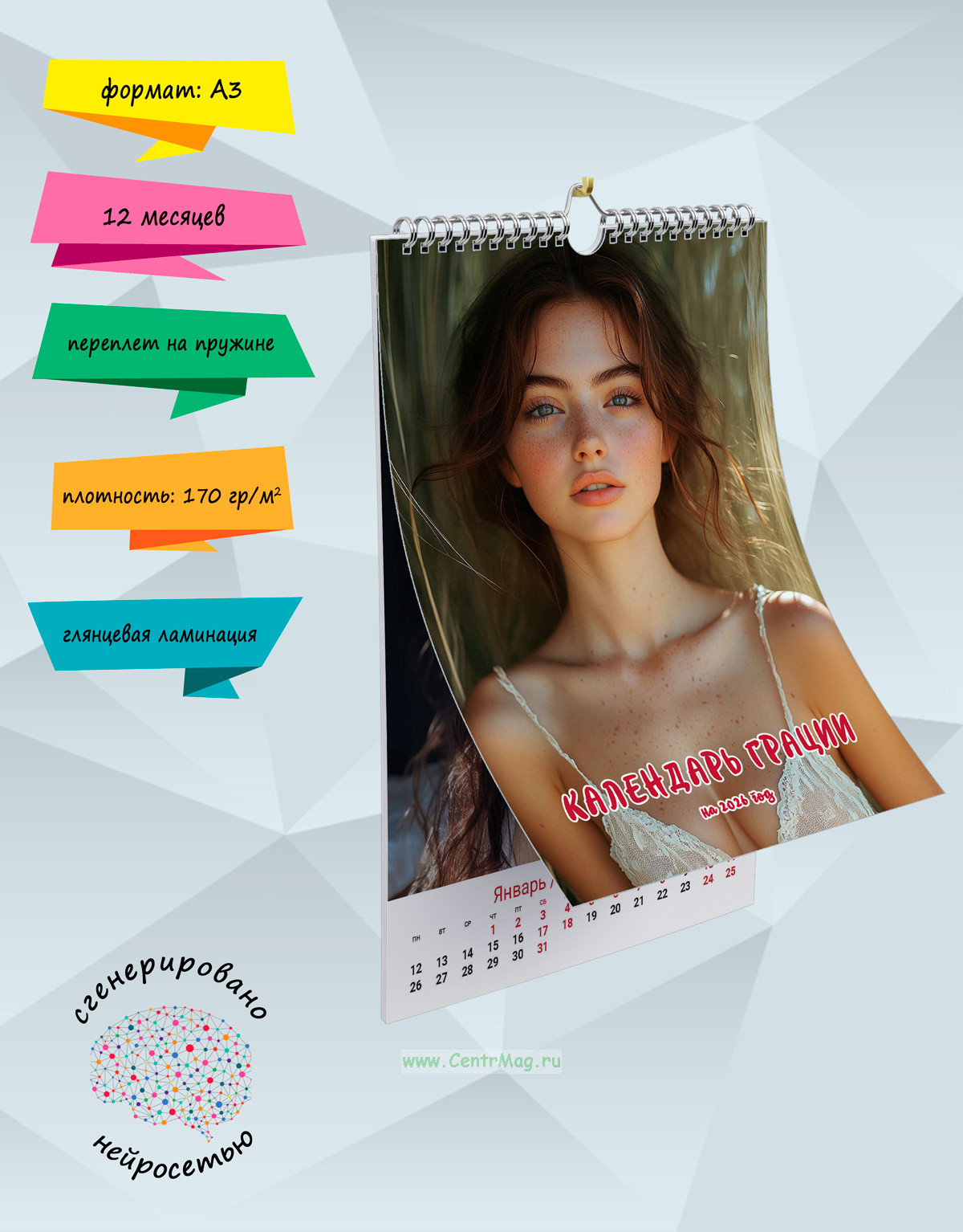 Календарь содержит изображения прелестных девушек, сгенерированные с помощью нейросети. Календарь будет отличным подарком для ваших родных, друзей, знакомых, коллег или даже для себя.