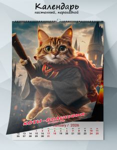 Календарь настенный, перекидной "Коты-волшебники" на 2026 год