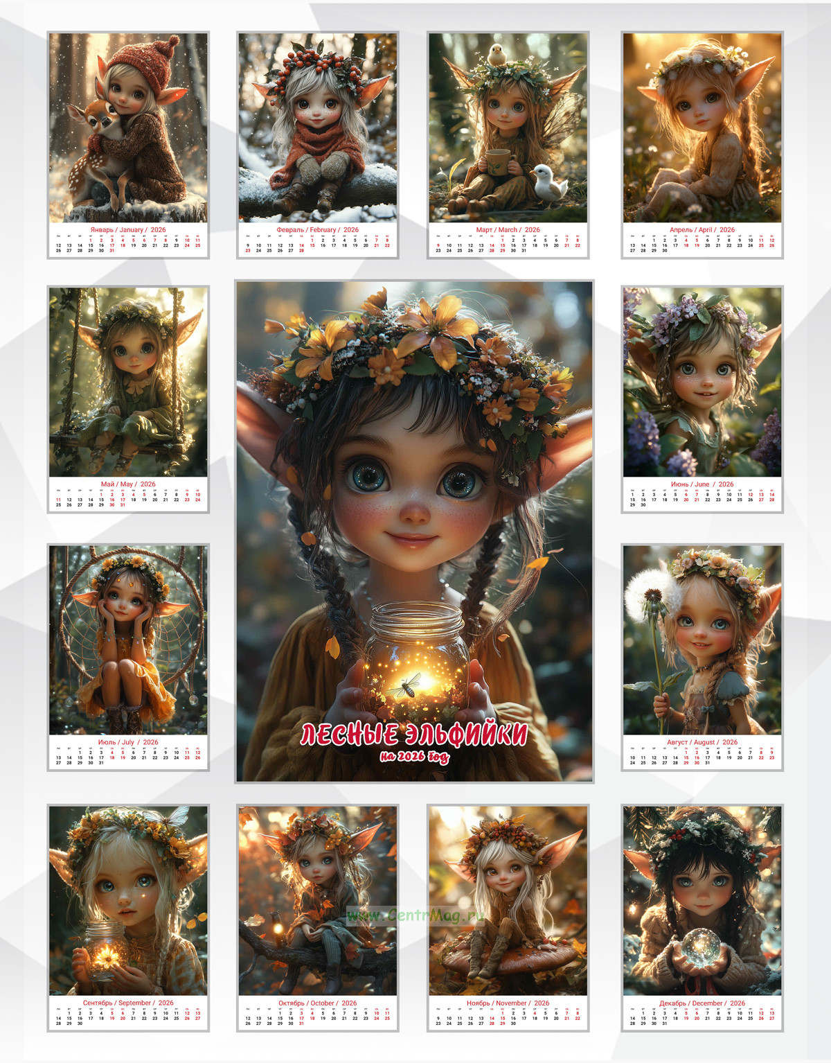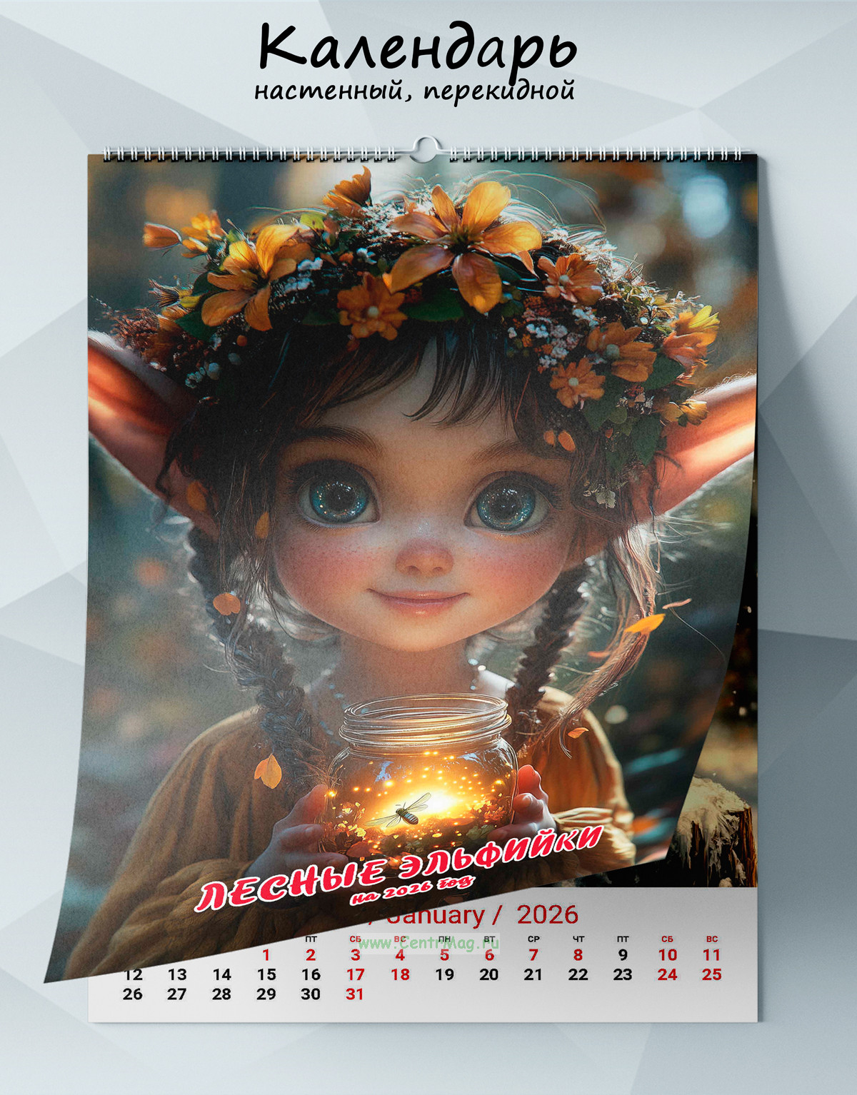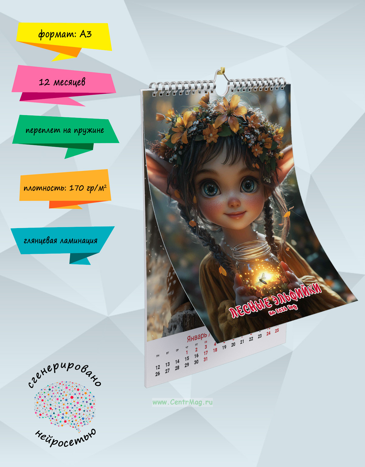 Календарь содержит изображения прекрасных лесных хранителей Эльфиек, сгенерированные с помощью нейросети. Календарь будет отличным подарком для ваших родных, друзей, знакомых, коллег или даже для себя.