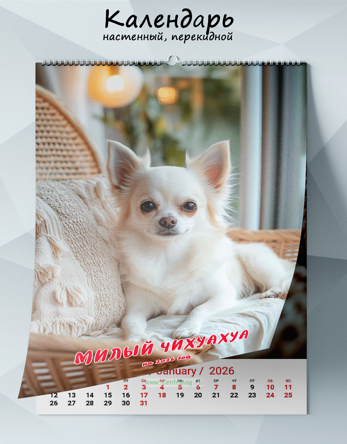 Календарь настенный, перекидной "Милый чихуахуа" на 2026 год