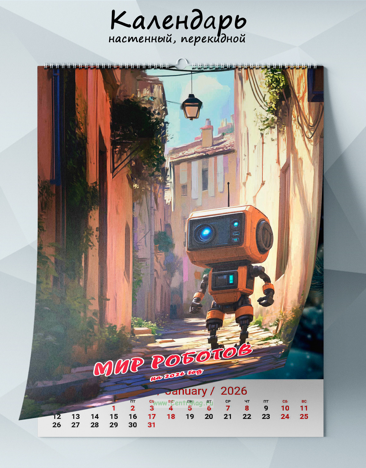 Календарь настенный, перекидной "Мир роботов" на 2026 год