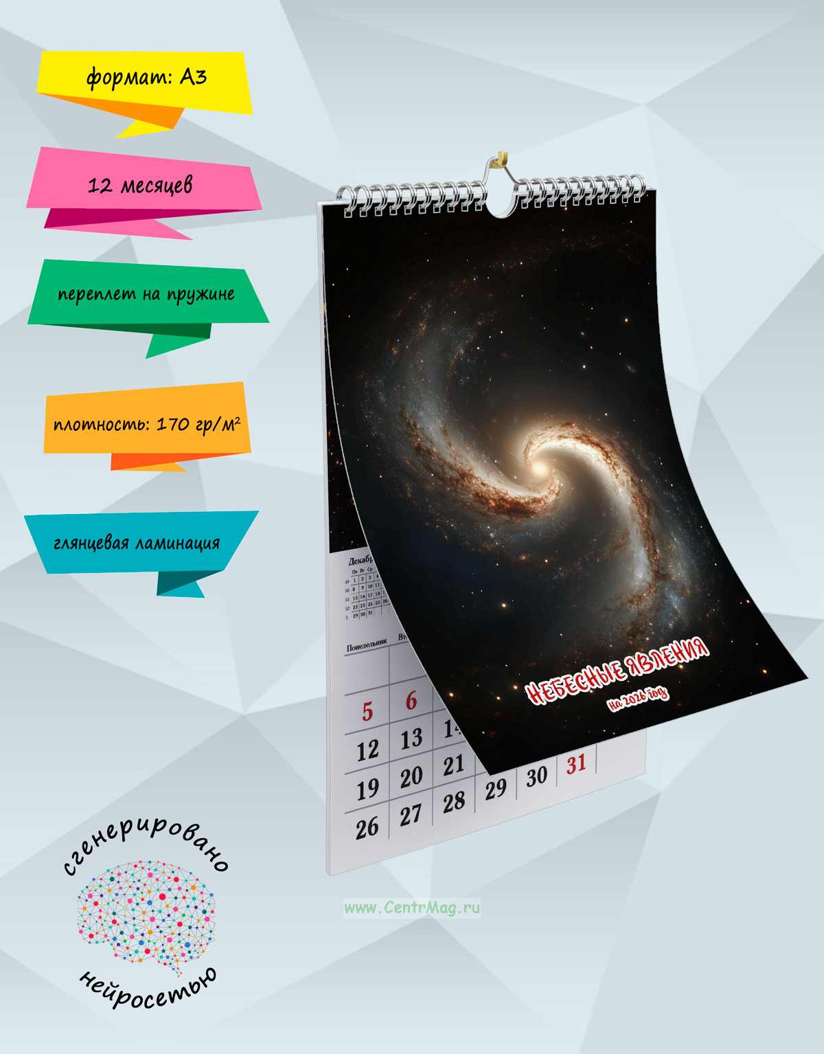 Календарь содержит изображения красивого и непостижимого космоса, сгенерированные с помощью нейросети. Календарь будет отличным подарком для ваших родных, друзей, знакомых, коллег или даже для себя.