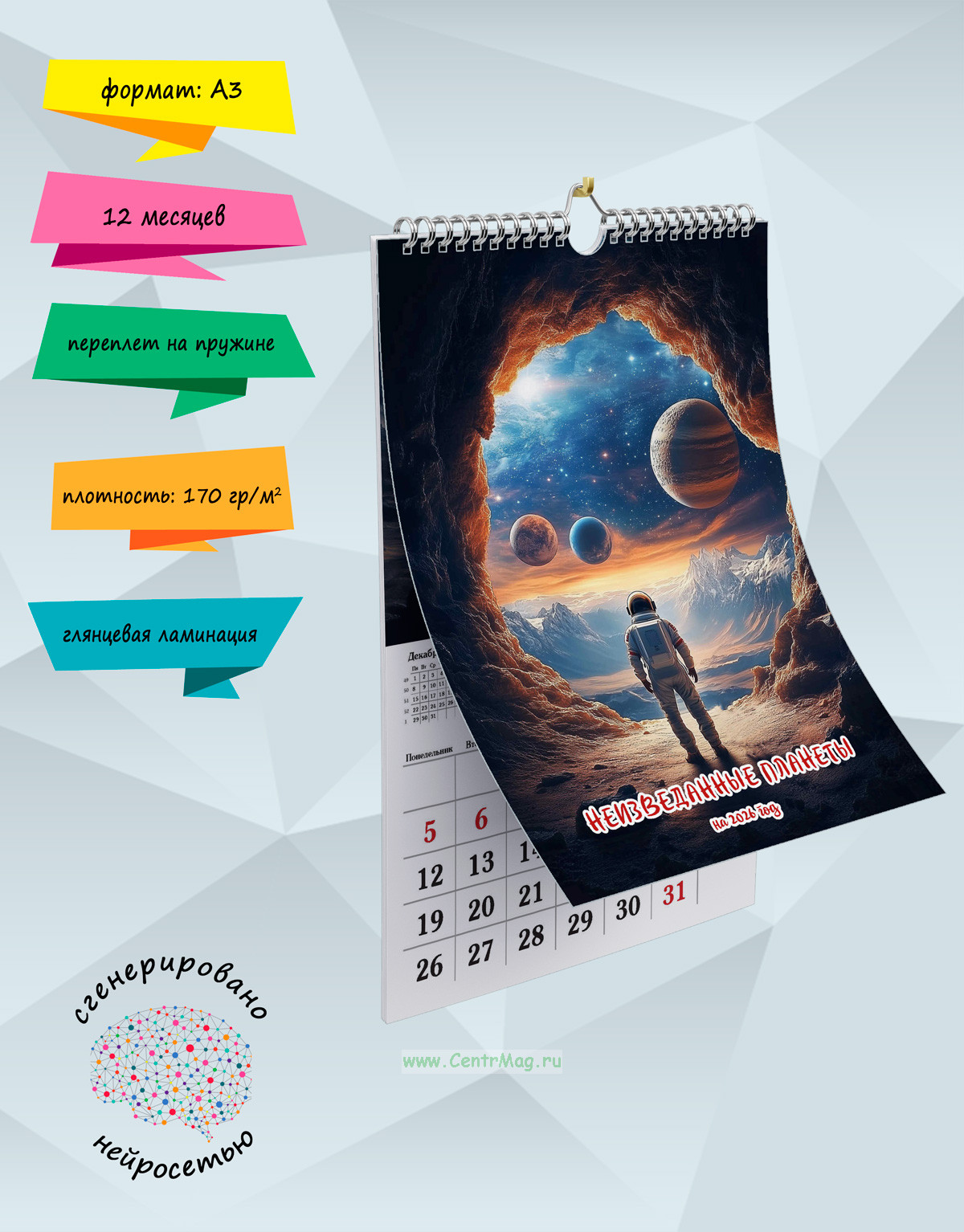Календарь содержит изображения загадочного космоса, сгенерированные с помощью нейросети. Календарь будет отличным подарком для ваших родных, друзей, знакомых, коллег или даже для себя.