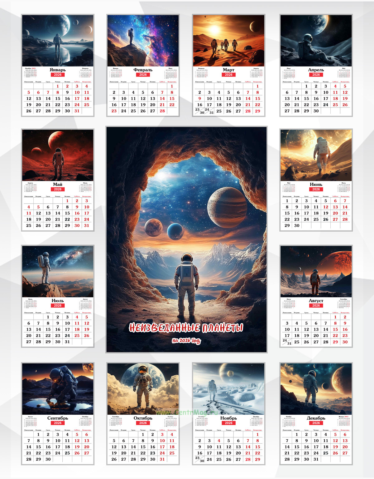 Календарь настенный, перекидной "Неизведанные планеты" на 2026 год