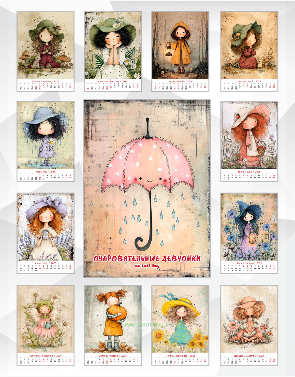 Календарь настенный, перекидной "Очаровательные девчонки" на 2026 год