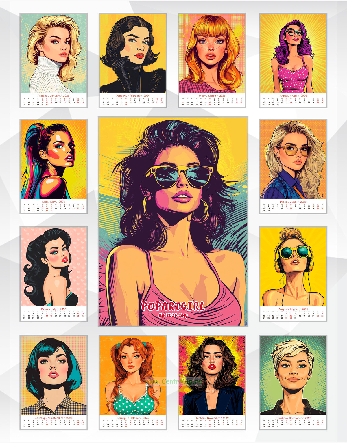 Календарь содержит изображения крутых девчонок в стиле поп арт, сгенерированные с помощью нейросети. Календарь будет отличным подарком для ваших родных, друзей, знакомых, коллег или даже для себя.