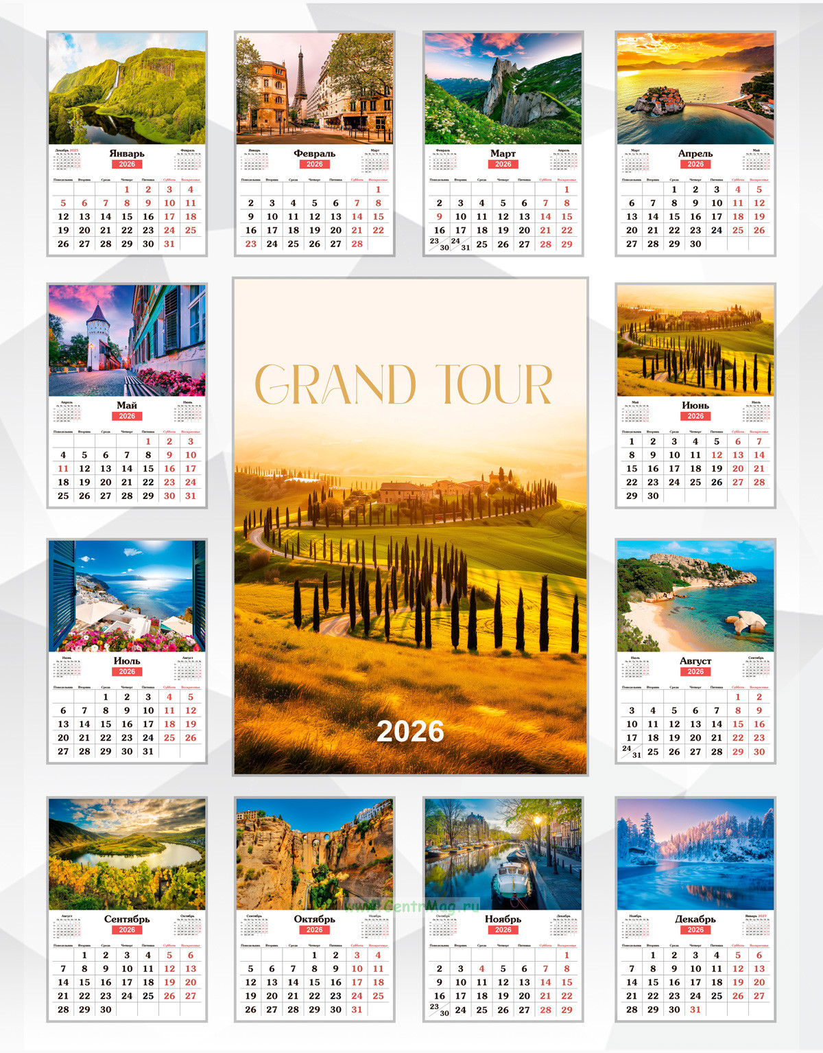 Календарь настенный, перекидной "Grand Tour" на 2026 год