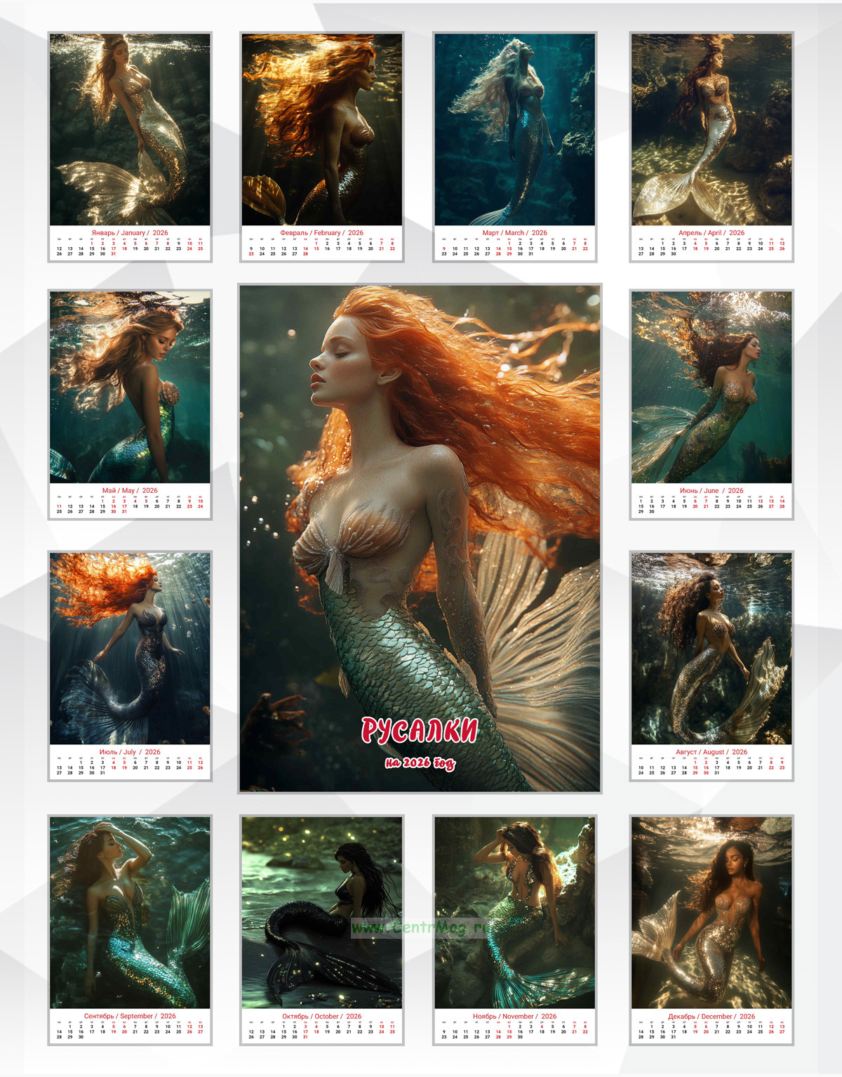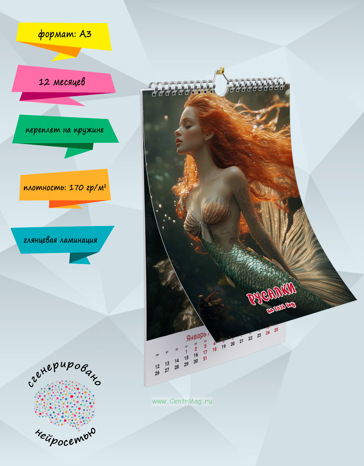 Календарь содержит изображения прекрасных мифологических существ Русалок, сгенерированные с помощью нейросети. Календарь будет отличным подарком для ваших родных, друзей, знакомых, коллег или даже для себя.