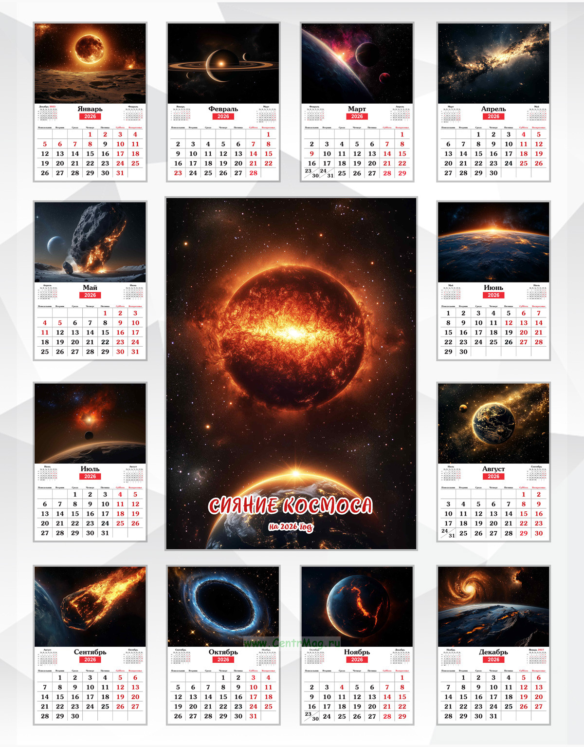 Календарь настенный, перекидной "Сияние космоса" на 2026 год