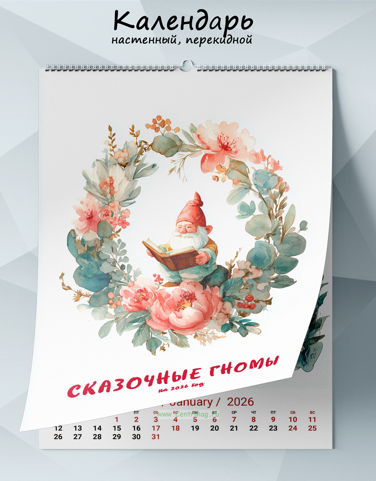 Календарь настенный, перекидной "Сказочные гномы" на 2026 год