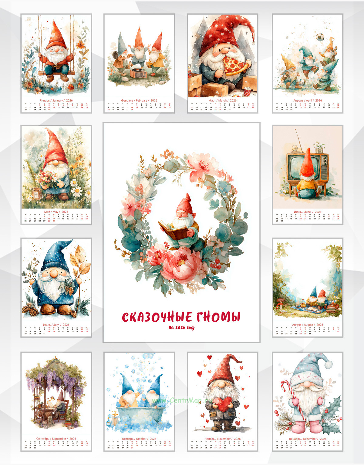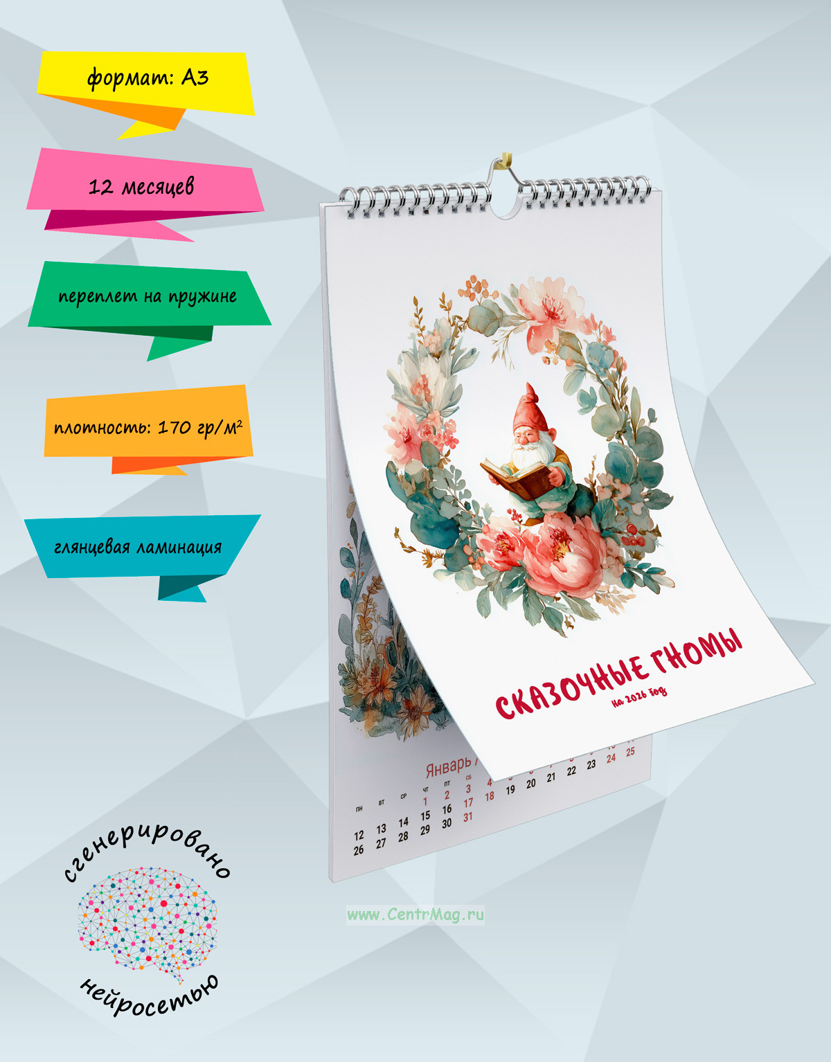 Календарь содержит изображения милых сказочных гномов, сгенерированные с помощью нейросети. Календарь будет отличным подарком для ваших родных, друзей, знакомых, коллег или даже для себя.