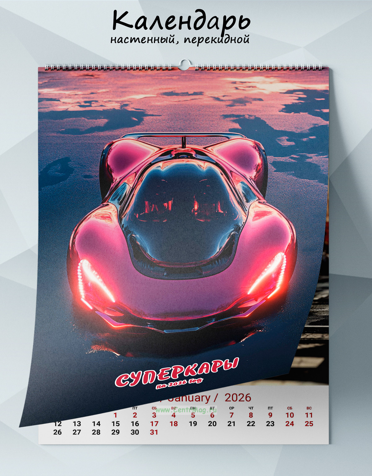 Календарь настенный, перекидной "Суперкары" на 2026 год