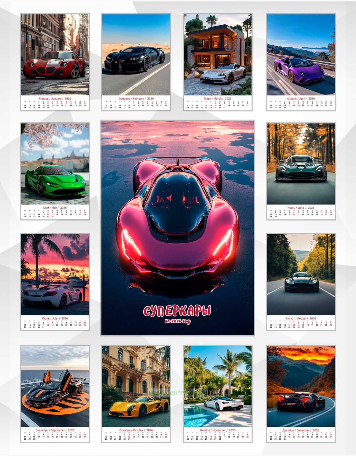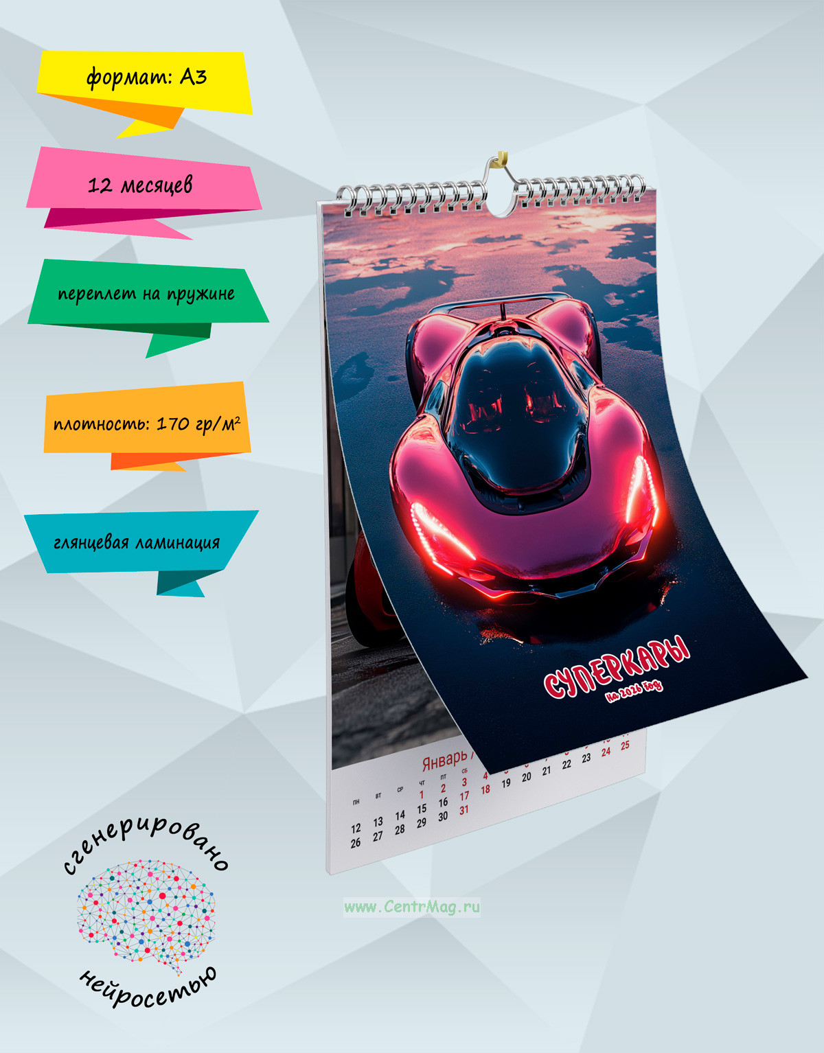 Календарь содержит изображения красивых элитных автомобилей, сгенерированные с помощью нейросети. Календарь будет отличным подарком для ваших родных, друзей, знакомых, коллег или даже для себя.