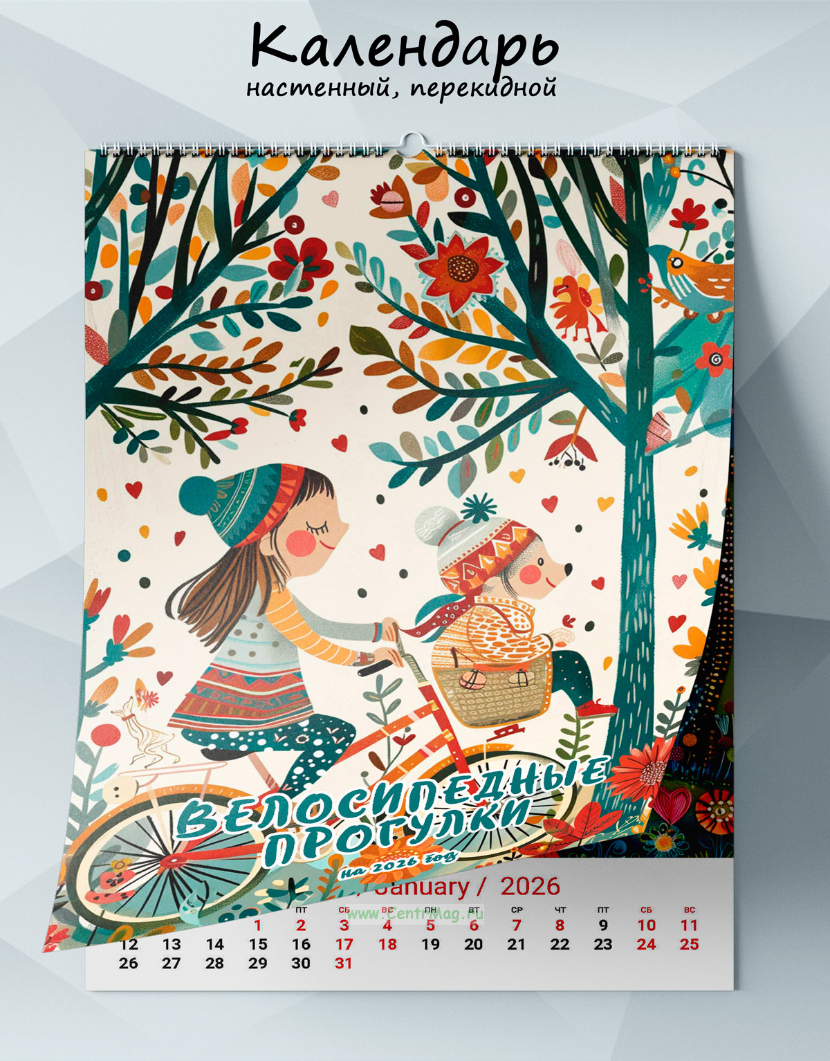 Календарь настенный, перекидной "Велосипедные прогулки" на 2026 год