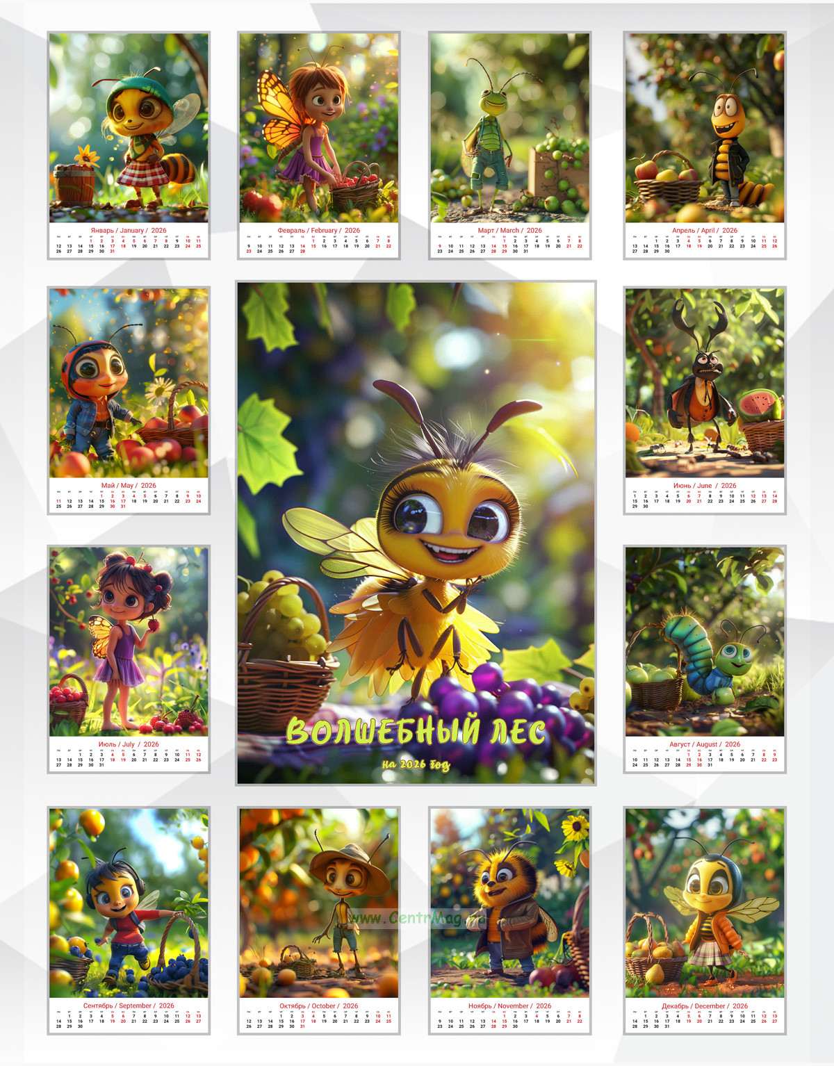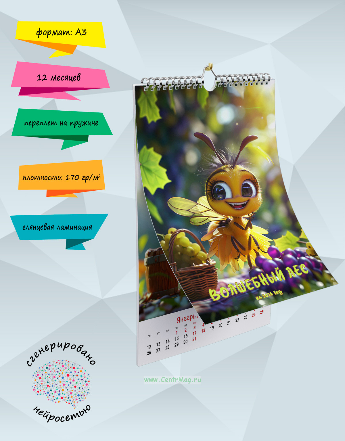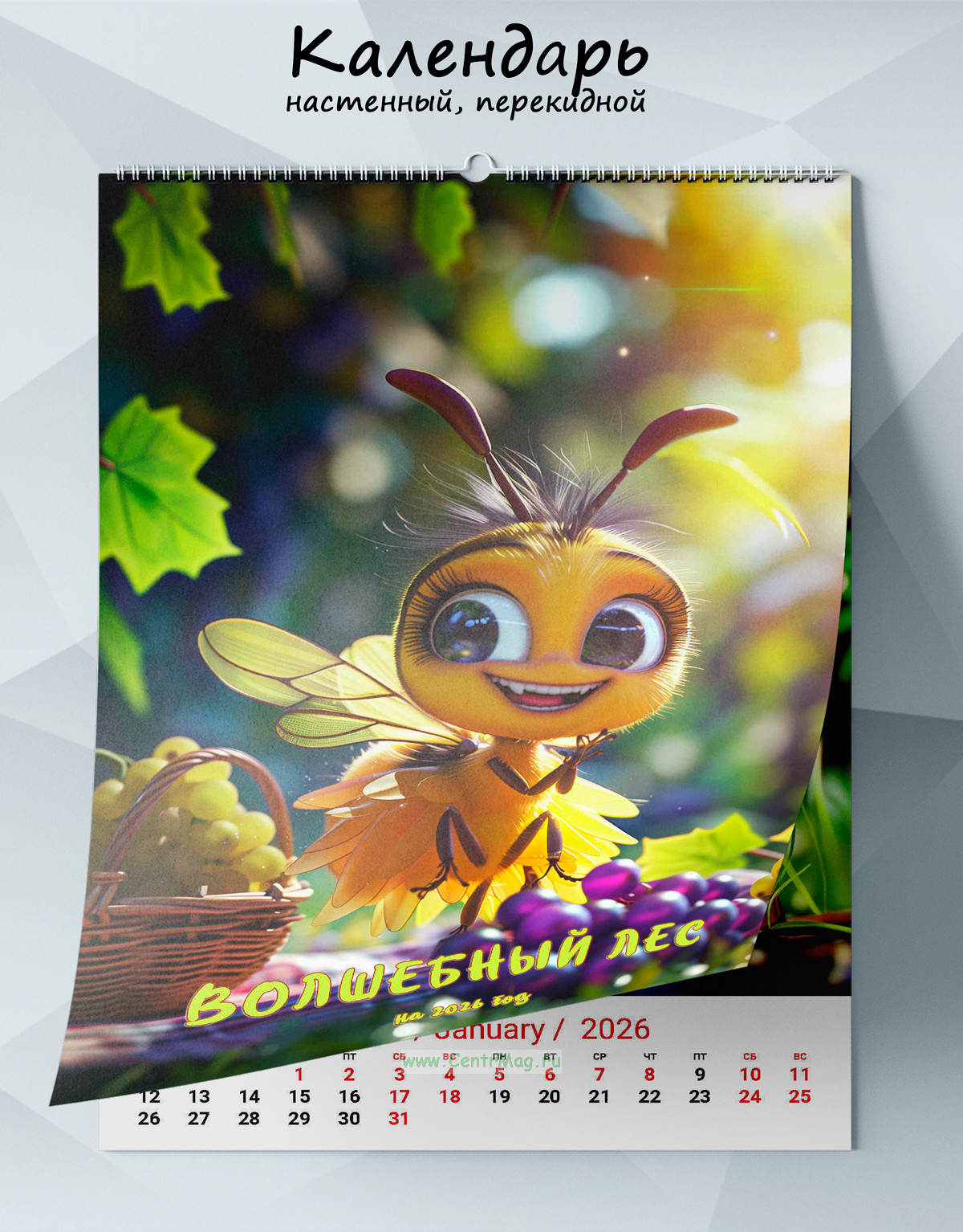 Календарь содержит изображения интересных насекомых, сгенерированные с помощью нейросети, которые могут обитать в волшебном лесу. Календарь будет отличным подарком для ваших родных, друзей, знакомых, коллег или даже для себя.