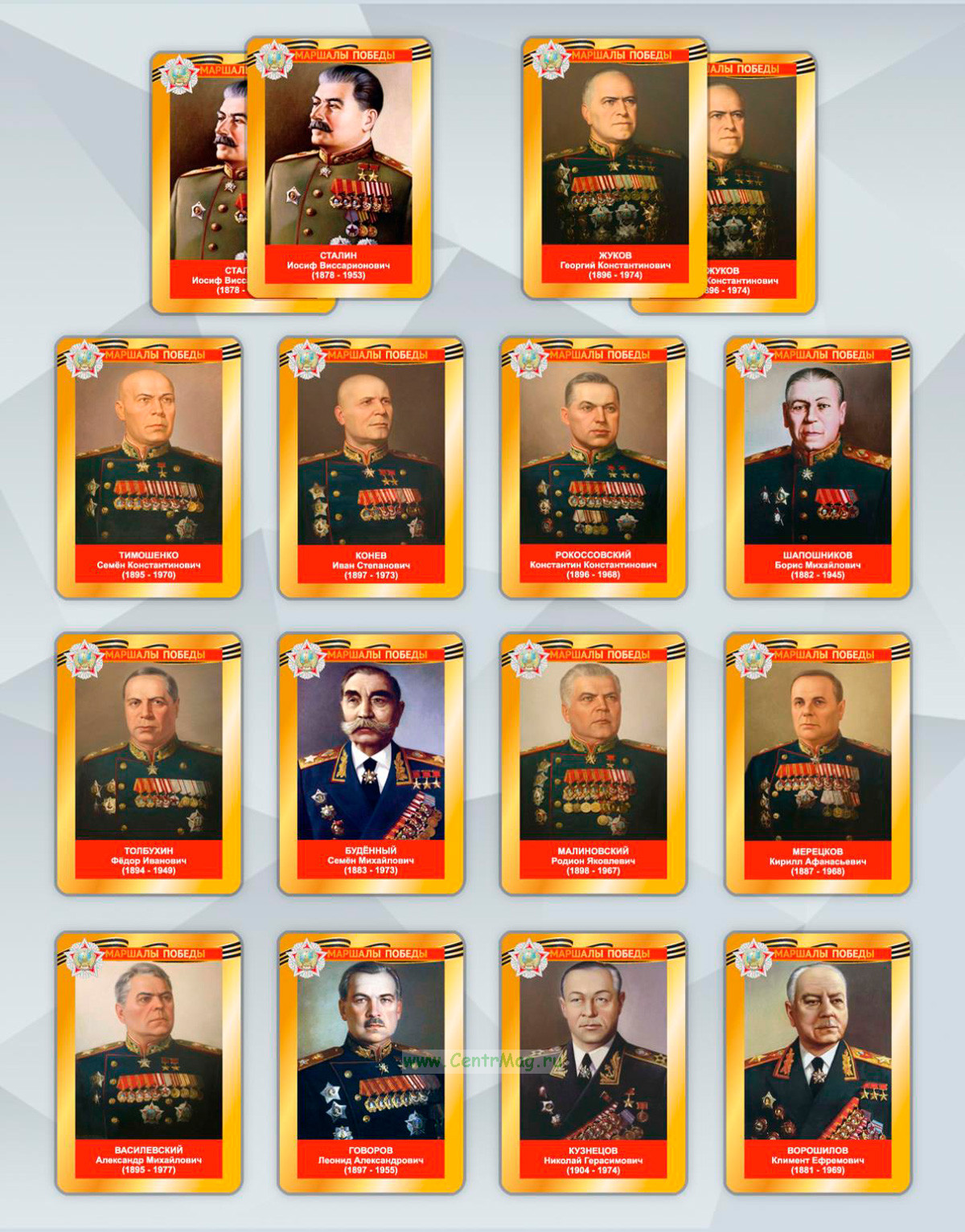 Набор карманных календариков "Маршалы Победы", содержит изображения следующих маршалов таких как: