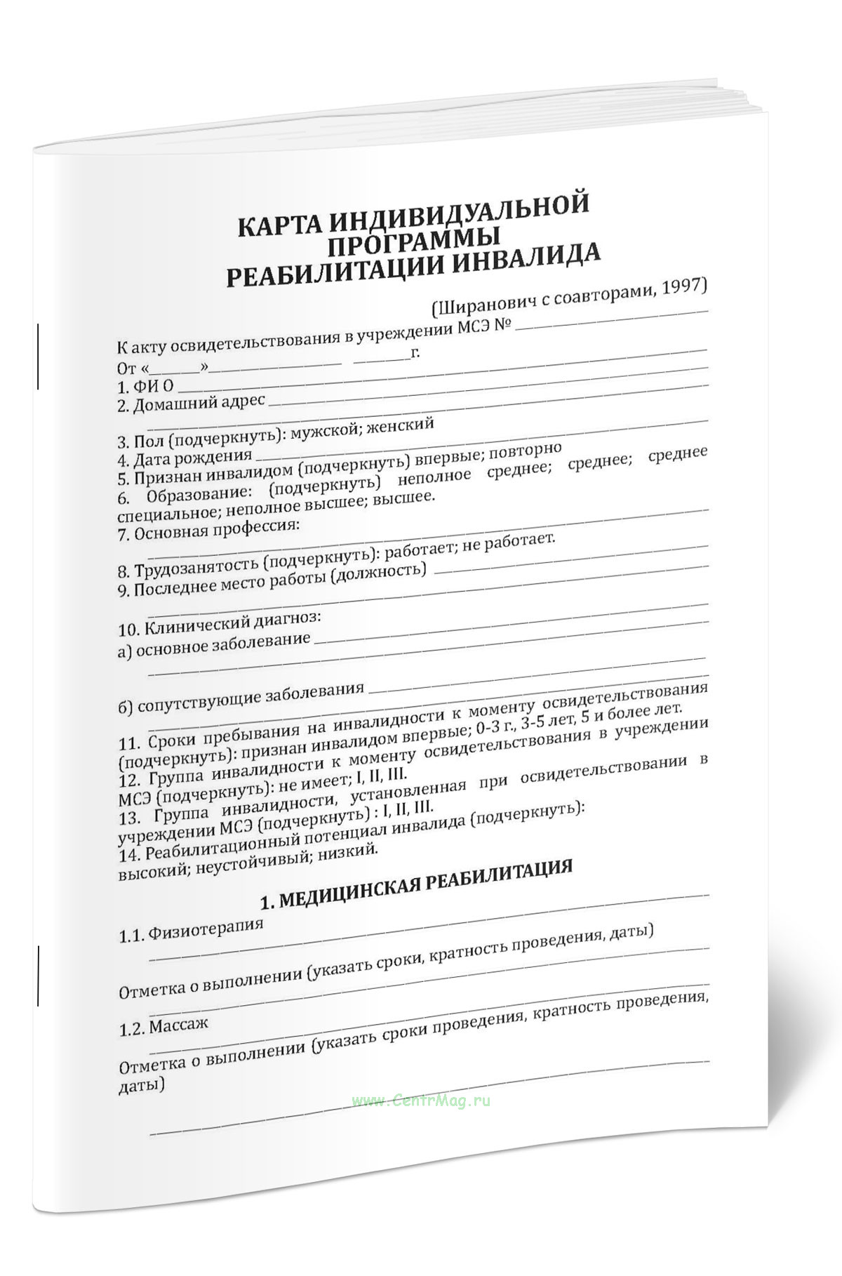 Индивидуальная программа реабилитации инвалида (ИПР) - перечень реабилитационных мероприятий, направленных на восстановление способностей инвалида к бытовой, общественной, профессиональной деятельности в соответствии со структурой его потребностей, кругом интересов, уровнем притязаний с учетом прогнозируемого уровня его соматического состояния, психофизиологической выносливости, социального статуса и реальных возможностей социально - средовой инфраструктуры.