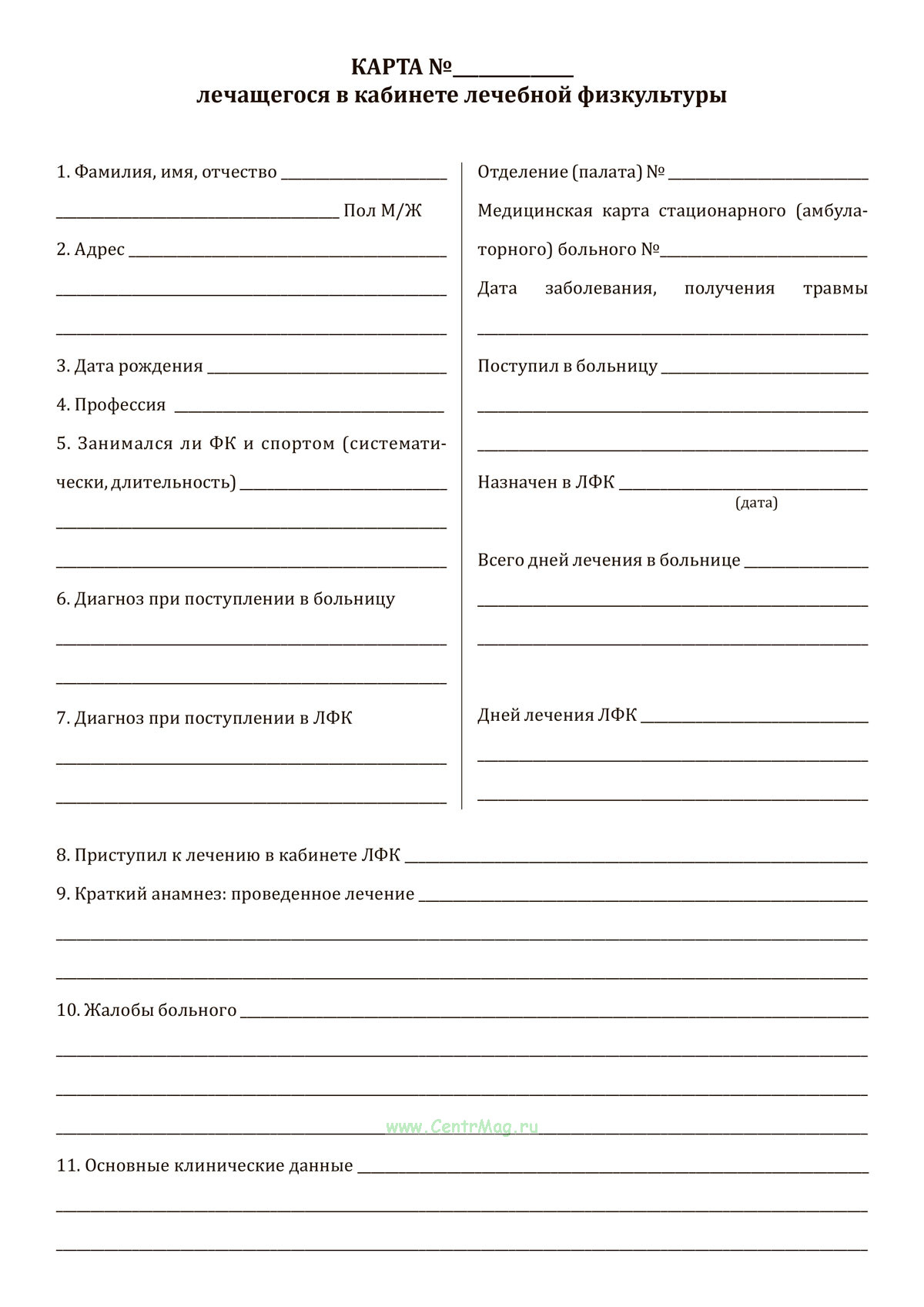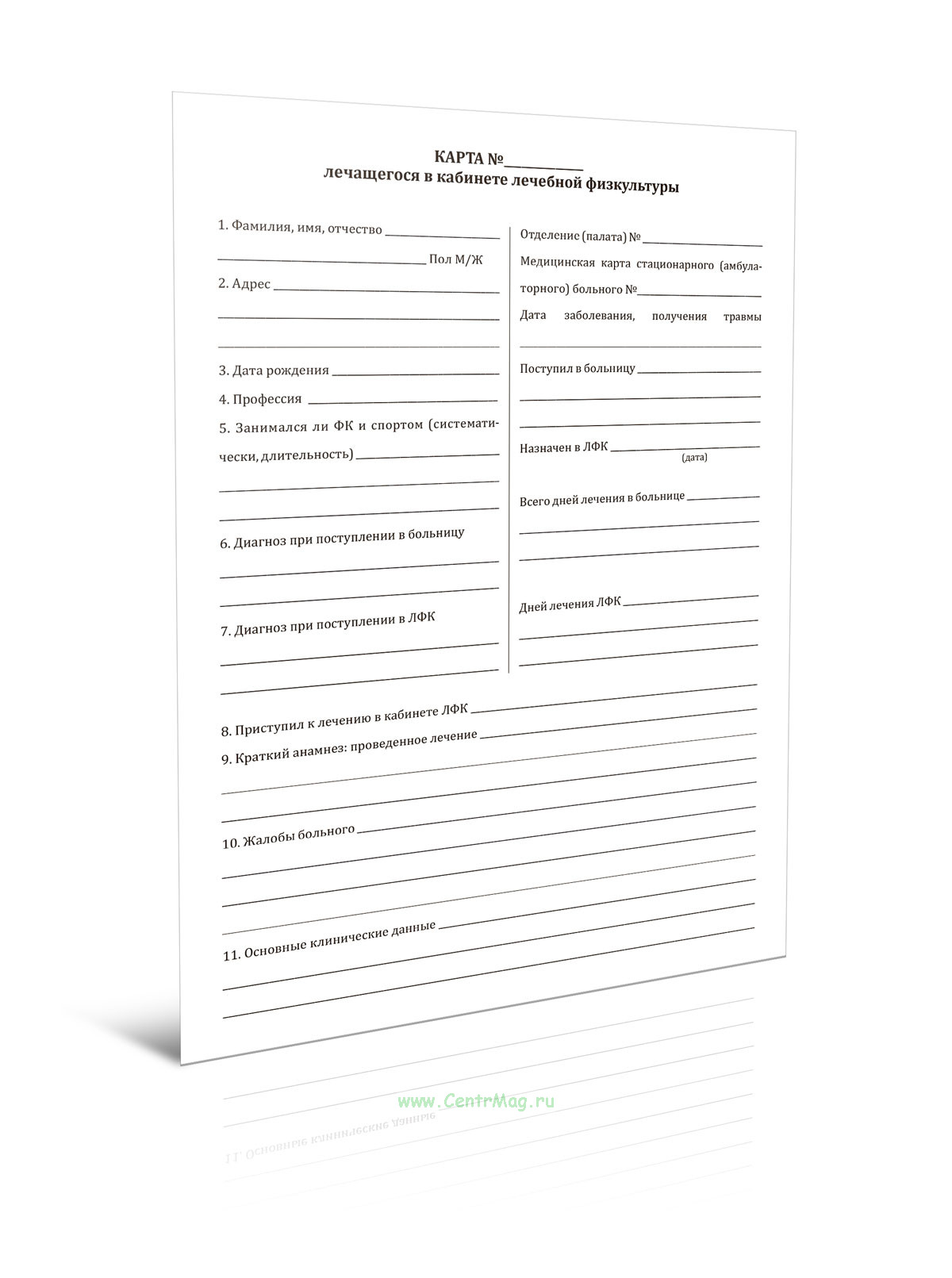 Карта лечащегося в кабинете лечебной физкультуры продается только как чистый незаполненный бланк, без печатей и подписей соответствует 149-ФЗ от 27.07.2006