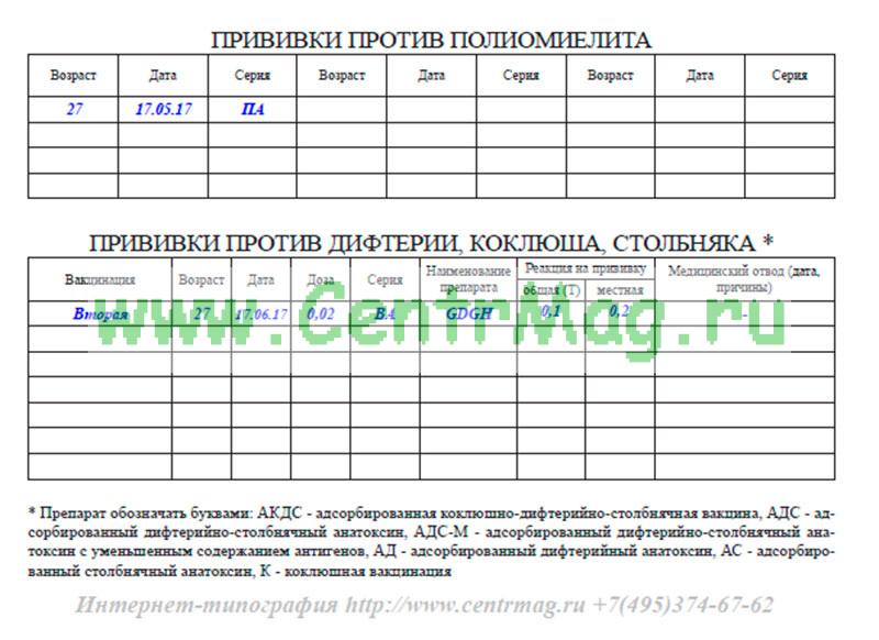 Карта профилактических прививок (Форма 063/у) продается только как чистый незаполненный документ, без печатей и подписей и соответствует 149-ФЗ от 27.07.2006