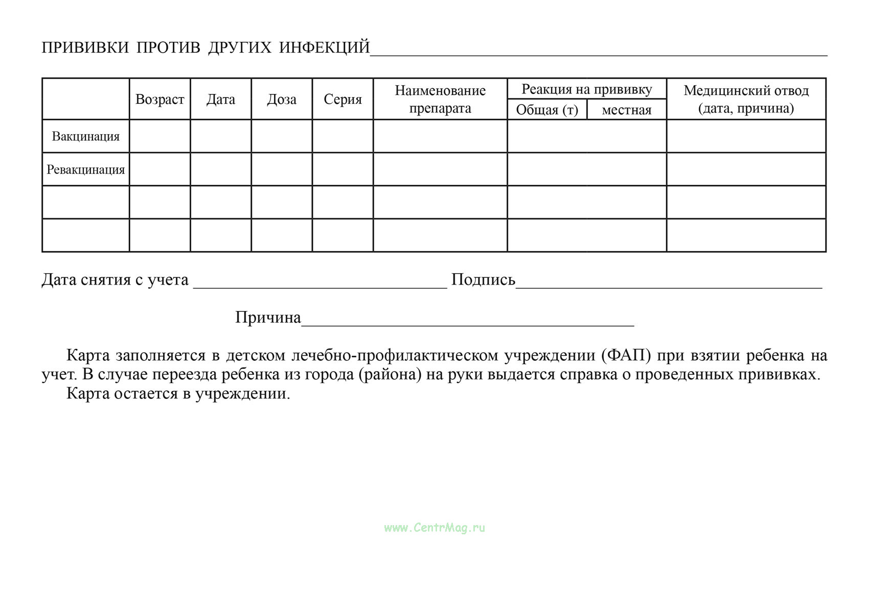Карта профилактических прививок (Форма 063/у) продается только как чистый незаполненный документ, без печатей и подписей и соответствует 149-ФЗ от 27.07.2006