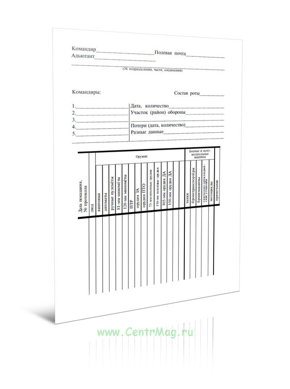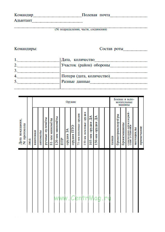Форма Карточки учета подразделений, частей и соединений приведена в книге Допрос военнопленных.