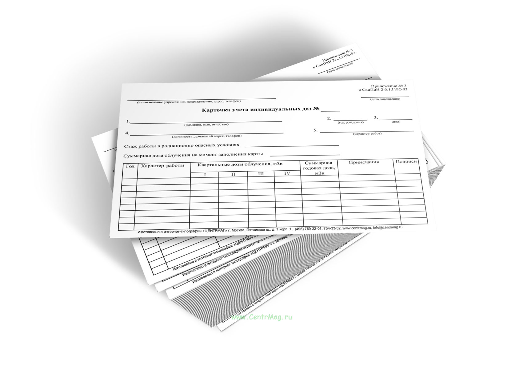 Карточка учета индивидуальных доз продается только как чистый незаполненный бланк, без печатей и подписей и соответствует 149-ФЗ от 27.07.2006