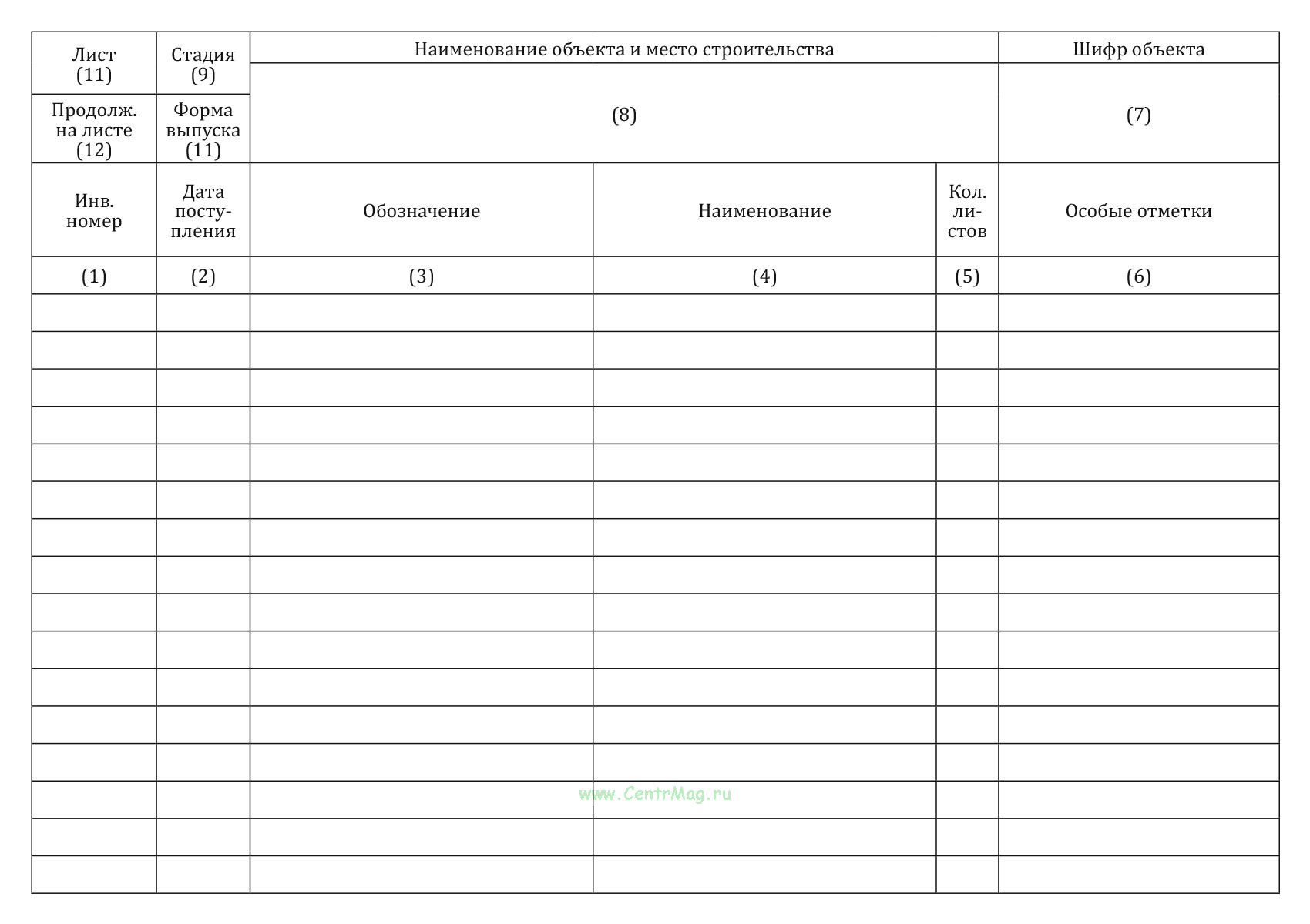 Форма карточки учета документации соответствует приложению А к ГОСТу Р 21.1003-2009 Система проектной документации для строительства (СПДС). Учет и хранение проектной документации