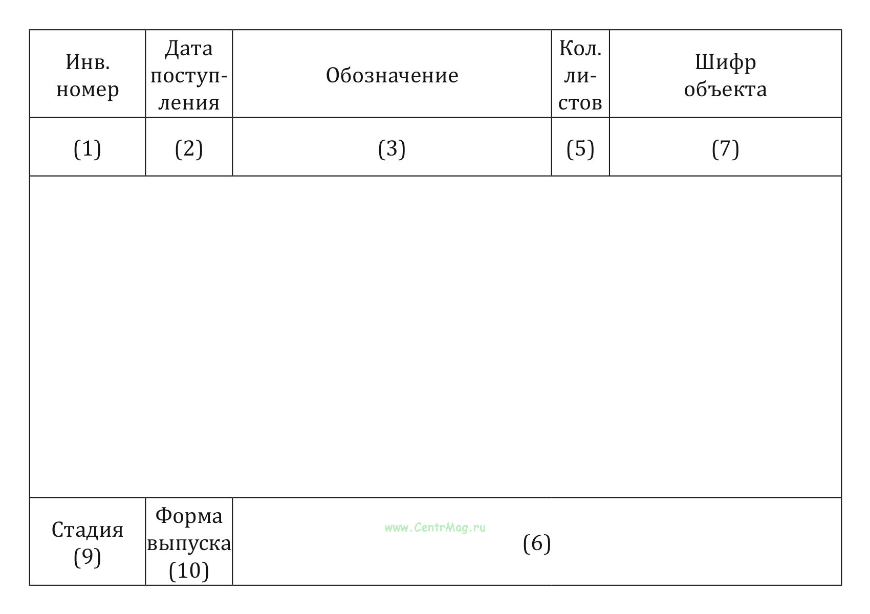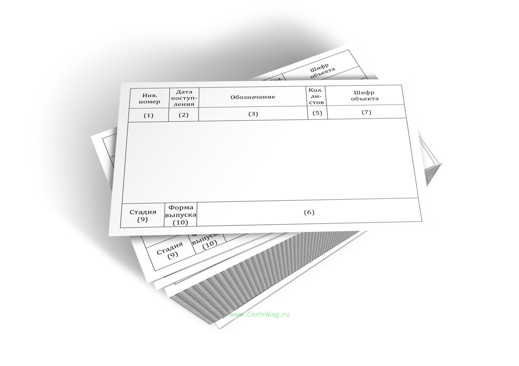 Форма карточки учета документации соответствует приложению А к ГОСТу Р 21.1003-2009 Система проектной документации для строительства (СПДС). Учет и хранение проектной документации