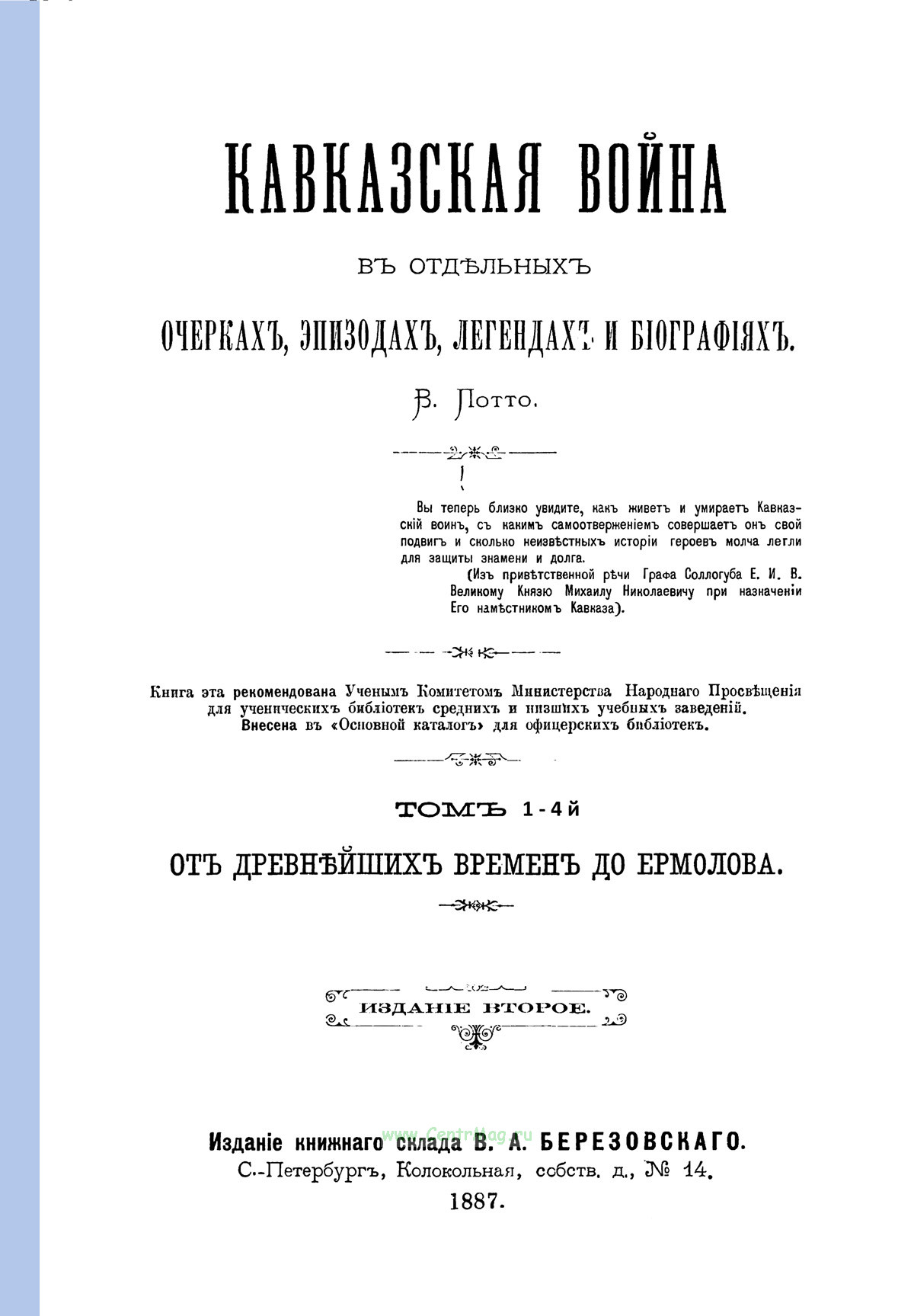 Фундаментальный труд выдающегося военного историка и полководца русской армии охватывает период вооруженного противостояния на Кавказе с начала XVI века по 1831 год.